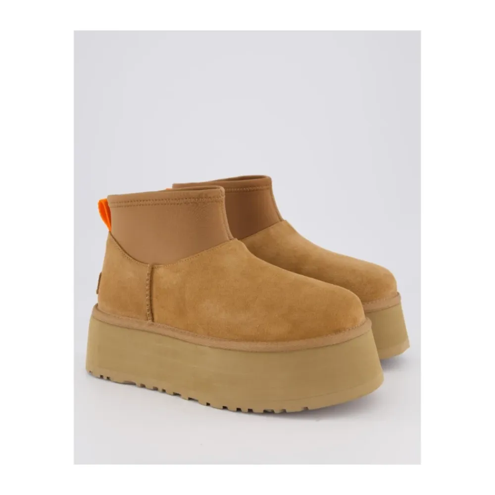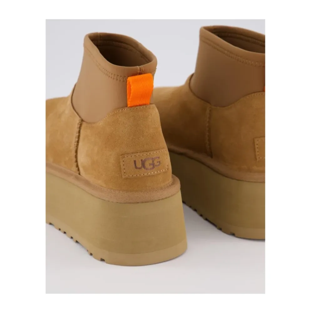 Bleiben Sie diesen Winter mit diesen braunen UGG Classic Mini Dipper Stiefeletten für Frauen stilvoll und gemütlich. Hergestellt aus einem Wildleder-Obermaterial, Neopren-Schaft und UGGplush-Futter, verfügen diese Stiefel über eine Plateausohle mit einer Höhe von 5 cm für zusätzlichen Komfort. Komplett mit einem Fersen-Zuglasche aus Polyester, Schaumstoff-Fußbett und EVA-Zwischensohle sind diese Stiefel perfekt für kaltes Wetter. Die EVA-Außensohle aus Zuckerrohr sorgt für Traktion, während das geprägte Logo auf der Ferse einen Hauch von Eleganz verleiht..Dieses Modell fällt etwas groß aus – wenn Sie zwischen zwei Größen liegen, empfehlen wir Ihnen, die kleinere Größe zu wählen.