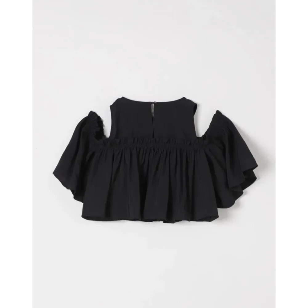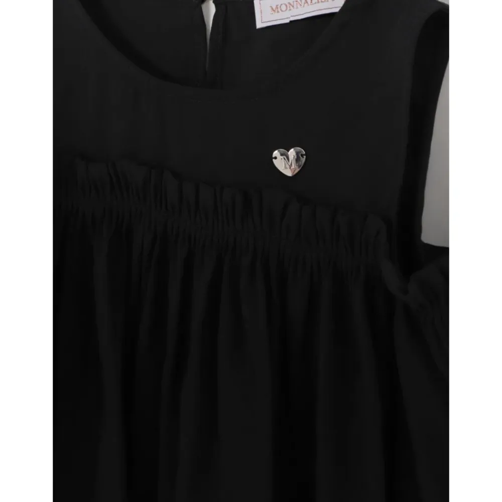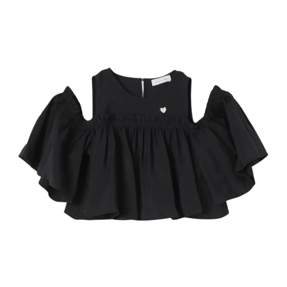 Das Cold Shoulder Ruffle Top von Monnalisa kombiniert verspielte Rüschen mit markanten Schulterausschnitten für einen raffinierten, modischen Look. Das Design betont das Dekolleté und die Schultern für eine elegante Alltagssilhouette. Hauptmerkmale: Schwarz | Cold-Shoulder-Ausschnitte | Rüschenbesatz | Ärmellos | Auffälliges Schulterdetail