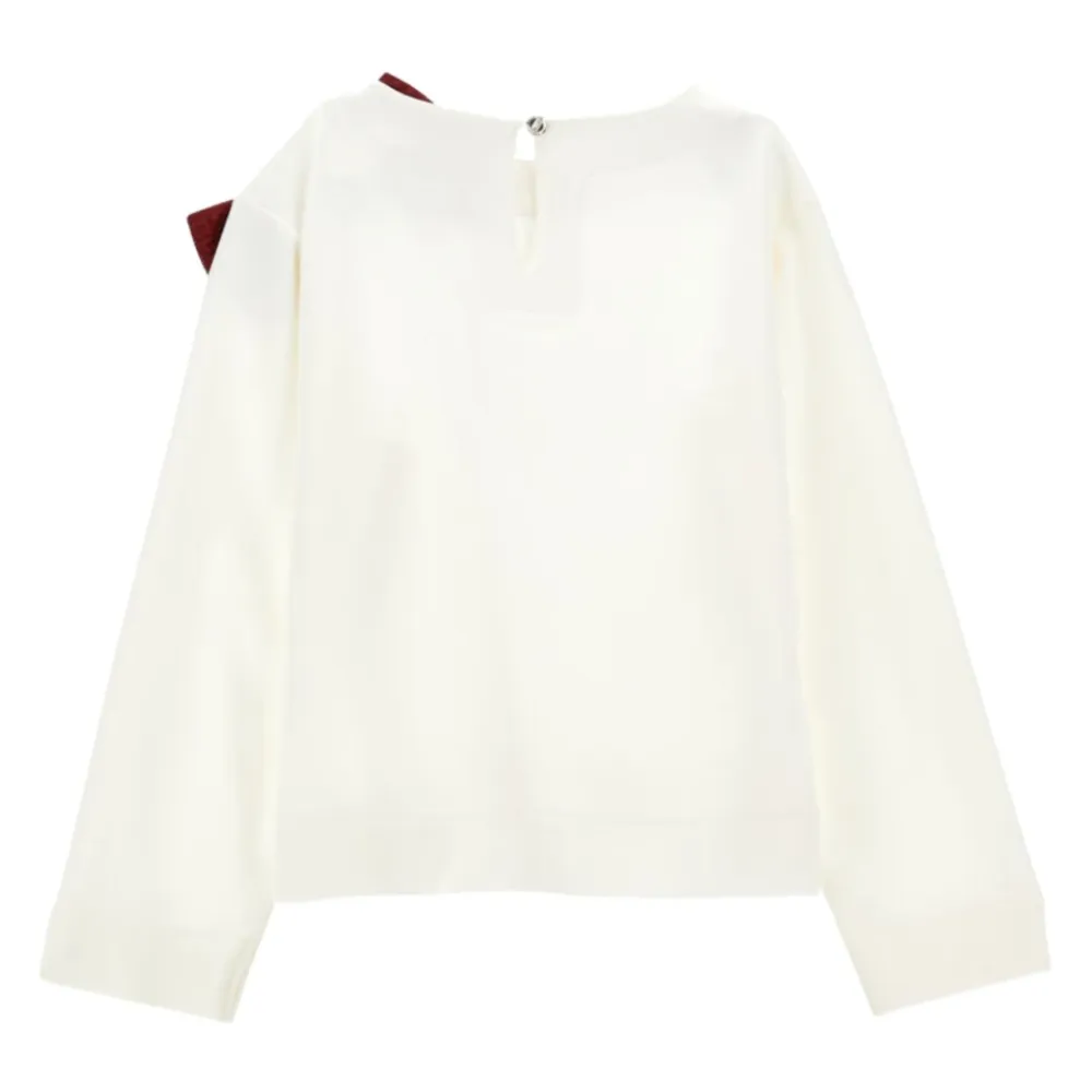 Werten Sie die Garderobe Ihres kleinen Mädchens mit dieser Monnalisa Kids Bluse in Cremefarbe auf. Mit einer abnehmbaren Maxi-Schleife in kontrastierendem rotem Jacquard, langen Ärmeln, einem ausgestellten Ausschnitt mit seitlichen Schlitzen und einem Juwelknopfverschluss hinten. Hergestellt in Italien aus einem Gemisch von 75% Viskose, 21% Polyamid und 4% Elastan.