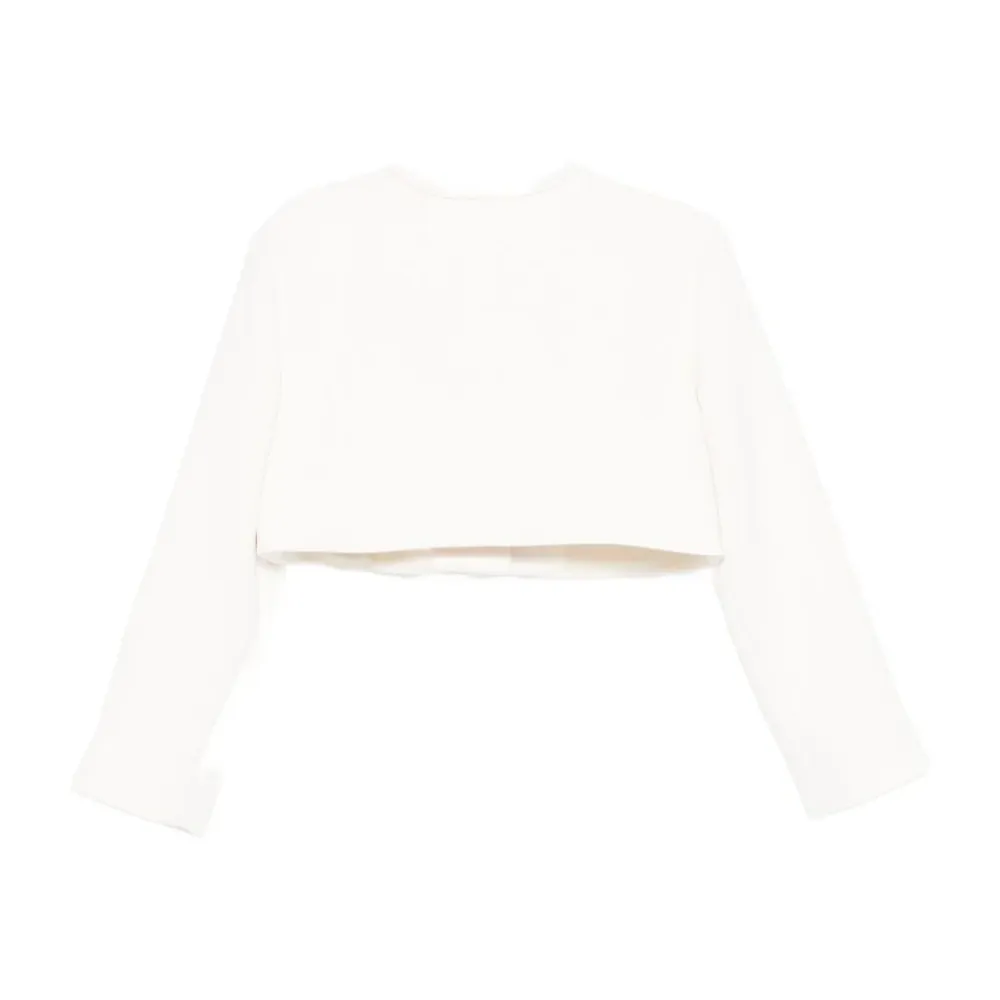 Die Elisabetta Franchi Crop Jacke mit dekorativer Schleife kombiniert eine verkürzte Silhouette mit einer auffälligen Schleife für einen eleganten, schicken Look. Sie ist leicht, lässt sich gut kombinieren und eignet sich für besondere Anlässe oder stilvolle Alltagsoutfits. Hauptmerkmale: Weiß | Milch | Rundhalsausschnitt | Lange Ärmel | Cropped-Design | Dekorative Schleife