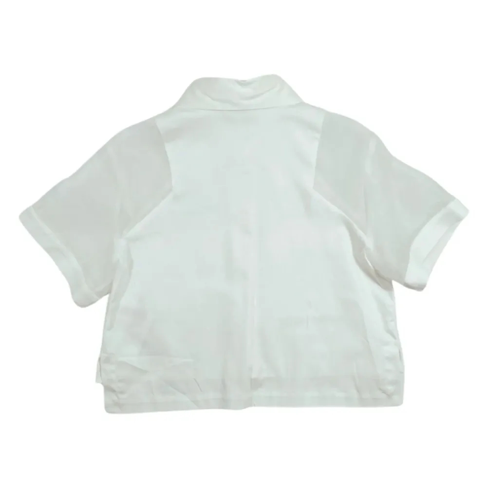 Das Elisabetta Franchi Cropped Poplin Shirt kombiniert eine taillierte, verkürzte Silhouette mit zarten Voile-Einsätzen für ein raffiniertes, alltagstaugliches Layering-Piece. Die verdeckte Knopfleiste und die aufgesetzten Taschen machen es praktisch für Casual-Smart-Outfits. Hauptmerkmale: Weiß | Baumwolle | Verdeckter Knopfverschluss vorne | Zwei aufgesetzte Taschen | Seitenschlitze | Cropped-Design | Popeline-Gewebe | Voile-Einsätze | Spitzkragen | Kurze Ärmel | Gerader Saum | Logo-Stickerei | Maße & Passform: Lockere Passform | Materialzusammensetzung & Pflege: 98% Baumwolle, 2% Elasthan
