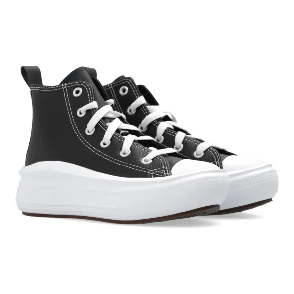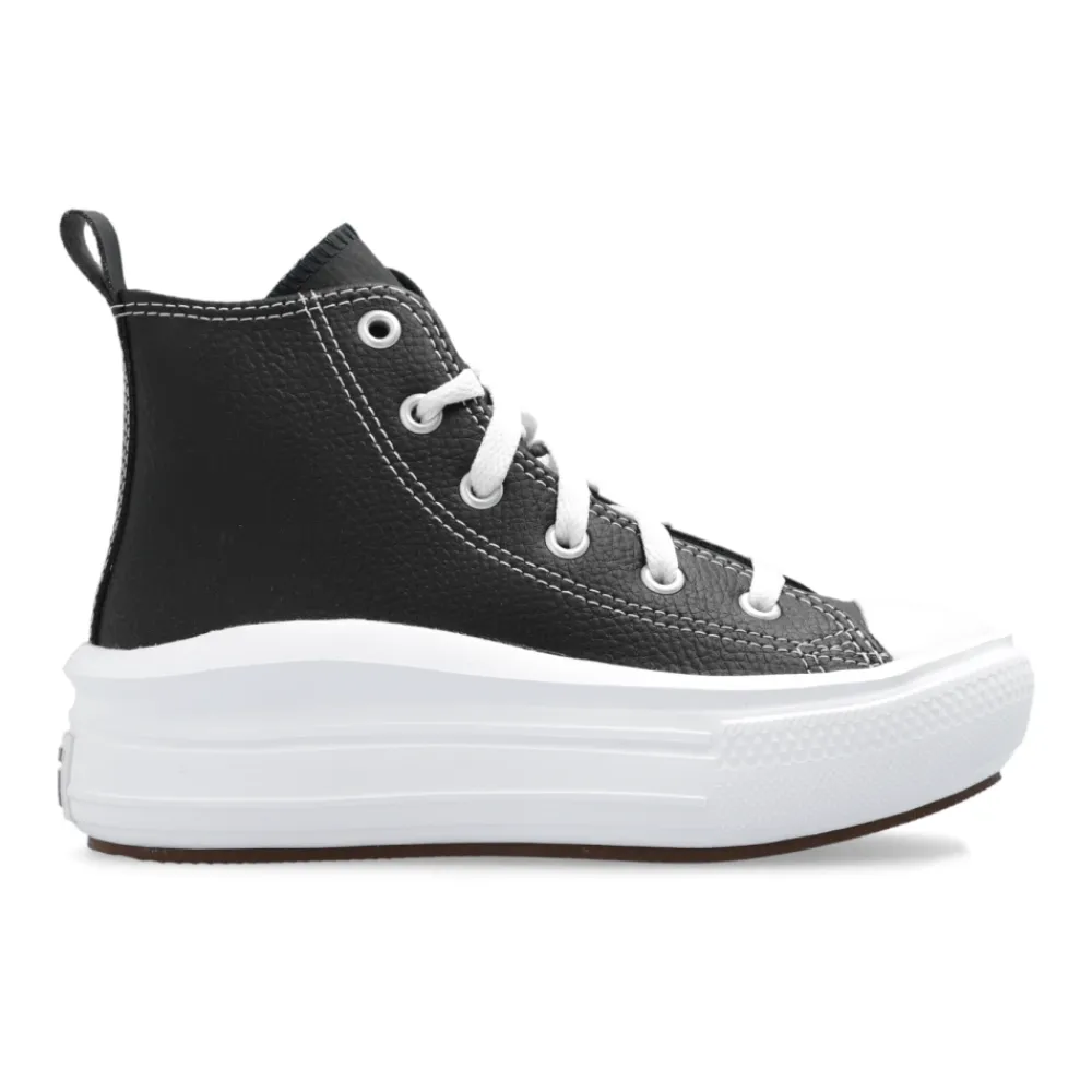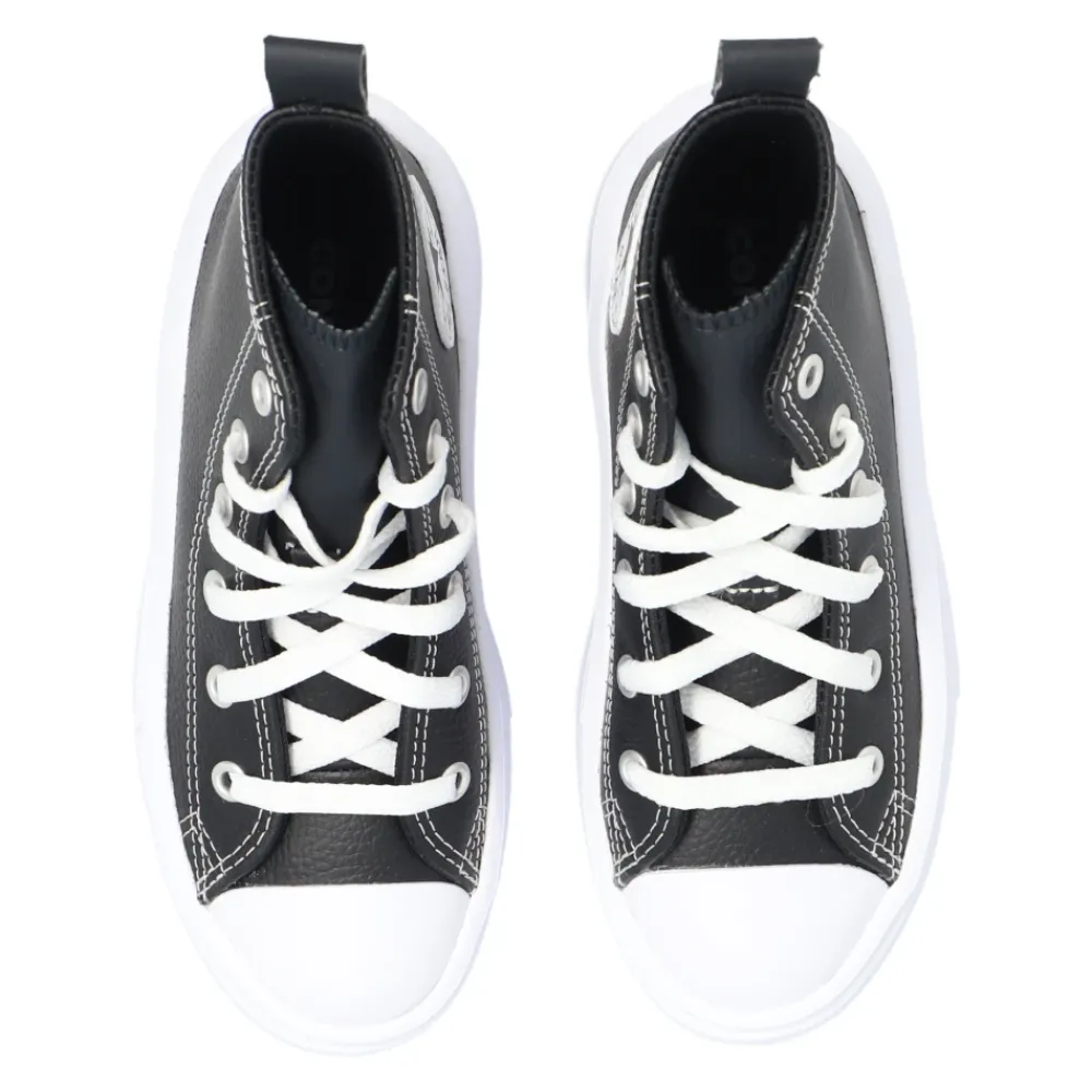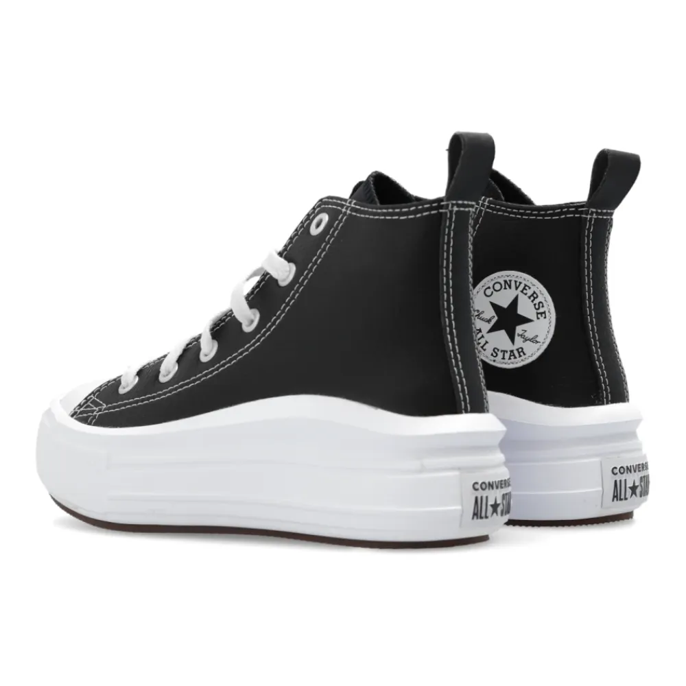 Schwarze ‚Ctas Move‘ Sneaker von Converse. Hergestellt aus Leder, sitzt dieses Schnürmodell auf einer braunen und weißen Gummisohle und zeigt ein Logo-Patch zur Markenerkennung. Sohlenhöhe: 4 cm. Sohlenhöhe an der höchsten Stelle: 5 cm.