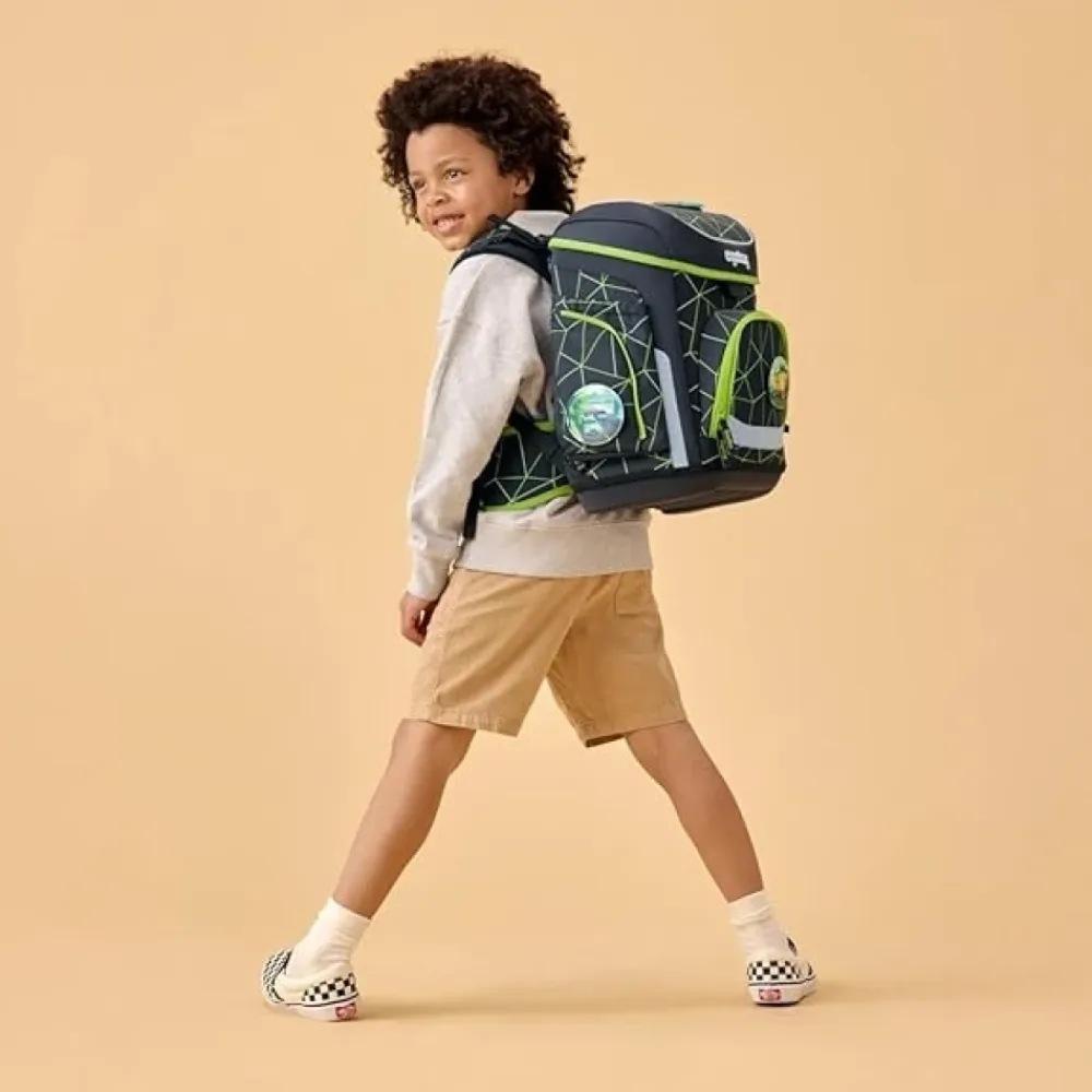 Das Ergobag Cubo Set ist ein ergonomisches 5-teiliges Rucksack-Set, das für den organisierten und komfortablen täglichen Gebrauch entwickelt wurde. Das Set kombiniert ein verstellbares Tragesystem, strukturierte Fächer und reflektierende Details für den sicheren und praktischen Transport von Schulmaterialien. Hauptmerkmale: Multicolor | Stabiler, verstärkter Boden | Wasserabweisender Bodenbereich | Reflektierende Elemente für 360° Sichtbarkeit | Robuste Konstruktion | Höhenverstellbares Tragesystem | Gepolsterte Hüftflossen für gleichmäßige Gewichtsverteilung | Übersichtliches Hauptfach mit flexibler Unterteilung | Integriertes Notebookfach | Leicht zu öffnender Deckel und Frontfach | Seitentaschen und inklusive Sportbeutel, Federmäppchen und Stiftehalter | Ergonomische Silhouette | Racebear-Motiv | Anpassbare Taschen mit Kletties | Koordiniertes 5-teiliges Set | Abmessungen und Passform: 28 x 40 x 25 cm (Breite x Höhe x Tiefe) | Höhenverstellbares Tragesystem für individuelle Passform | Ergonomische Passform mit gepolsterten Hüftflossen zur Gewichtsverteilung auf die Hüften
