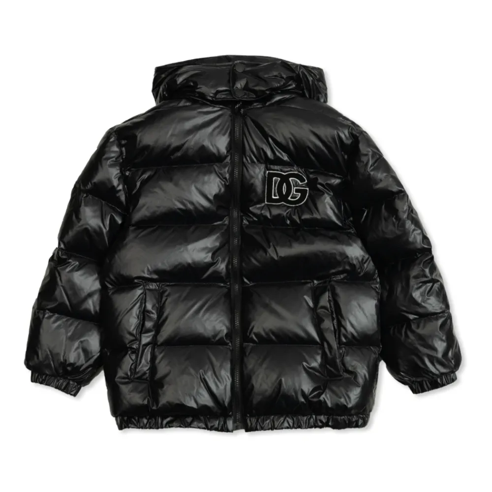 DAUNENJACKE MIT ABNEHMBAREM KRAGEN von Dolce & Gabbana Kids ist eine raffinierte Wahl für junge Modebegeisterte. Die klassische, leicht übergroße Silhouette und die markante horizontale Steppung, gefüllt mit Daunen, schaffen weiche, breite Paneele, die nicht nur Komfort, sondern auch ein einzigartiges Aussehen gewährleisten. Die äußere Schicht, gefertigt aus glattem, glänzendem synthetischem Stoff in tiefem Schwarz, strahlt moderne Eleganz mit einem minimalistischen Touch aus. Die einheitliche Farbpalette unterstreicht die Exklusivität des Designs, während das klar umrandete Patch mit dem „DG“-Monogramm auf der Brust als subtiler Akzent dient, der weltweit anerkannt wird. Der abnehmbare Kragen fügt praktische Anwendbarkeit hinzu und bietet Vielseitigkeit beim Styling. WARUM SOLLTEN SIE DIESES PRODUKT KAUFEN? * Herausragende Qualität und Komfort dank der natürlichen Füllung * Edles, minimalistisches Design inspiriert von italienischem Erbe * Funktionalität – der abnehmbare Kragen ermöglicht eine einfache Anpassung an Wetterbedingungen * Exklusives, wiedererkennbares „DG“-Logopatch