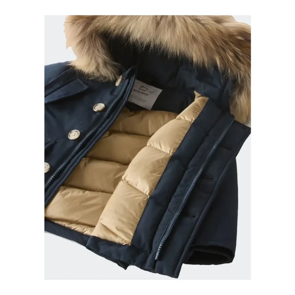 Der Woolrich Daunenparka kombiniert ein wind- und wasserabweisendes Außenmaterial mit einer Entendaunen-Isolierung, um zuverlässige Wärme zu spenden. Die Kapuze verfügt über einen herausnehmbaren Kaschmireinsatz für zusätzlichen Komfort und einen edlen Look. Hauptmerkmale: Blau | Blu | Baumwoll-Polyamid-Gemisch | Windabweisend | Wasserabweisend | Isoliert mit Entendaunen für hohe Wärme | Abnehmbarer Kaschmireinsatz an der Kapuze | Druckknopf- und Reißverschluss | Vier Vordertaschen | Elastische Rippbündchen | Kapuze mit Kaschmireinsatz | Logo-Patch auf dem Ärmel | Vier Vordertaschen | Zusammensetzung und Pflege: 60 % Baumwolle | 40 % Polyamid | 100 % Polyamid | 70 % Graue Entendaunen | 30 % Federn | 100 % Waschbärfell | Befolgen Sie die Pflegehinweise auf dem inneren Etikett des Kleidungsstücks. Hergestellt in China.