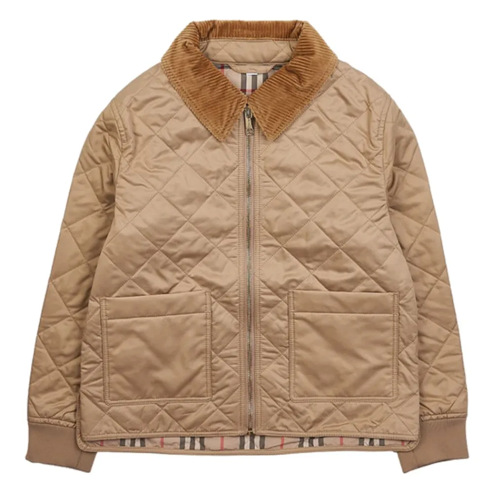 Kleiden Sie Ihr Kind stilvoll mit der Burberry Diamond Steppjacke, die sich durch ein klassisches Diamond-Steppdesign und ein Vintage-Checkmuster-Futter für einen Hauch von Eleganz auszeichnet. Wichtige Merkmale: Beige | Polyester | Diamond-Steppdesign | Vintage-Checkmuster-Futter | Gerippter Kragen | Frontreißverschluss | Lange Ärmel | Gerippte Bündchen | Zwei Seitentaschen | Gerader Saum | Zusammensetzung und Pflege: 100% Polyester
