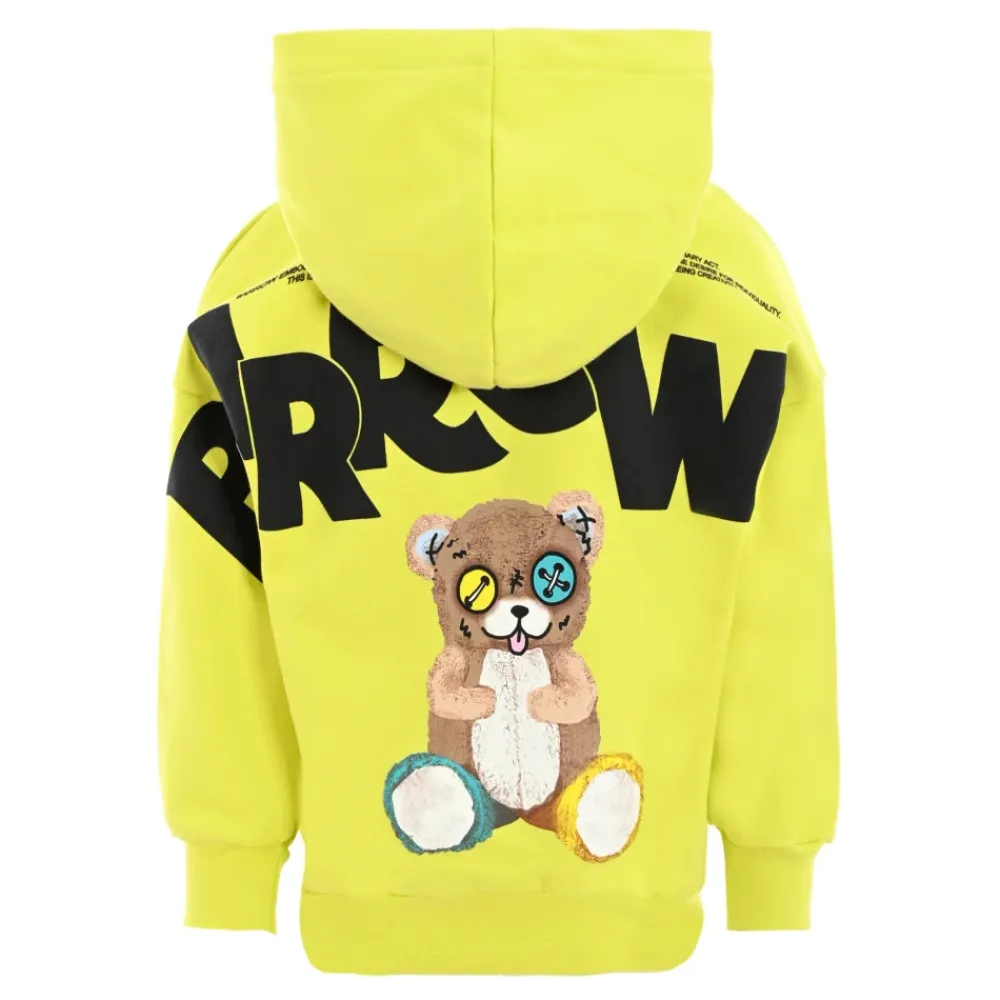 Kleide dein Kleines stilvoll in diesem limonengelben BARROW-Sweatshirt. Hergestellt in Italien aus Fleece-Baumwolle, verfügt es über lange Ärmel, eine Kapuze, eine Fronttasche, gerippte Bündchen und Saum. Verziert mit einem Bärenmotiv und Logo auf der Rückseite und dem ikonischen gelben Lächeln und Logo auf der Brust. Wird mit einem gelben Logo-Schlüsselanhänger geliefert. Hergestellt aus 100% Baumwolle. Maschinenwäsche bei 30°C.