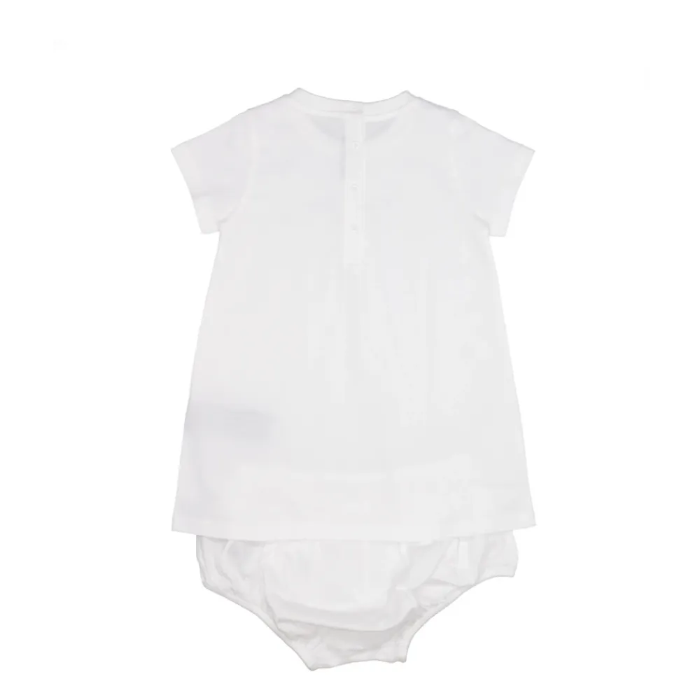 Kleide deine kleine Fashionista mit Stil in diesem Balmain Kids Body Set. Hergestellt aus weicher Baumwolle, verfügt dieses Oberteil mit Rundhalsausschnitt über kurze Ärmel, einfarbiges Design und einen Druckknopfverschluss hinten für einfaches Anziehen. Die Vorderseite zeigt ein bedrucktes Logo für einen Hauch von Designer-Flair. Vervollständige den Look mit den mitgelieferten Culottes.