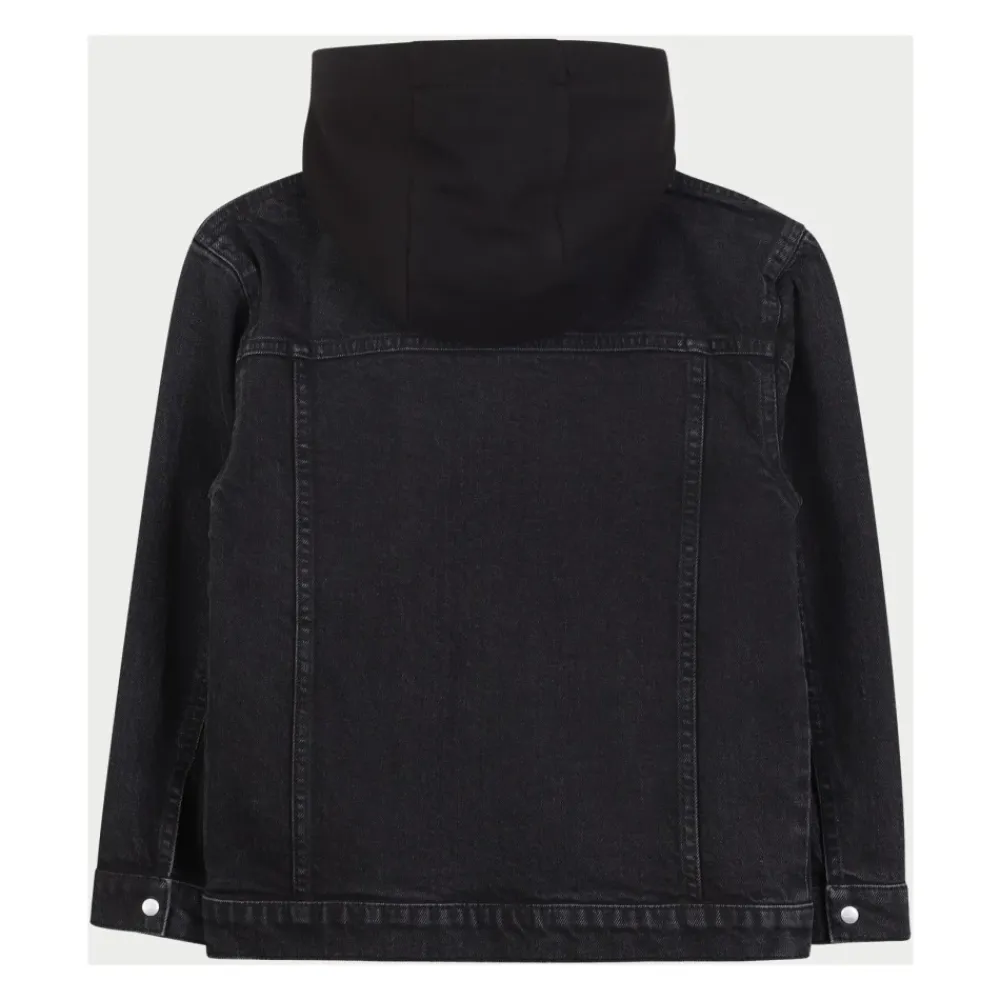 Kleiden Sie Ihren kleinen Mann stilvoll mit dieser Hugo Kinderjacke aus schwarzem Stretch-Denim. Mit einer Baumwollfleece-Kapuze, Brusttasche, Knopfverschluss und Logo auf der Brust.