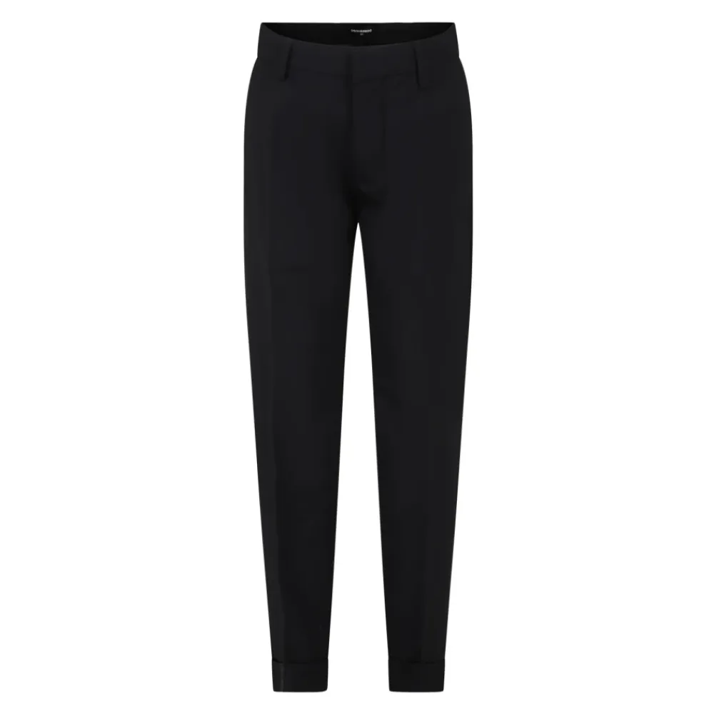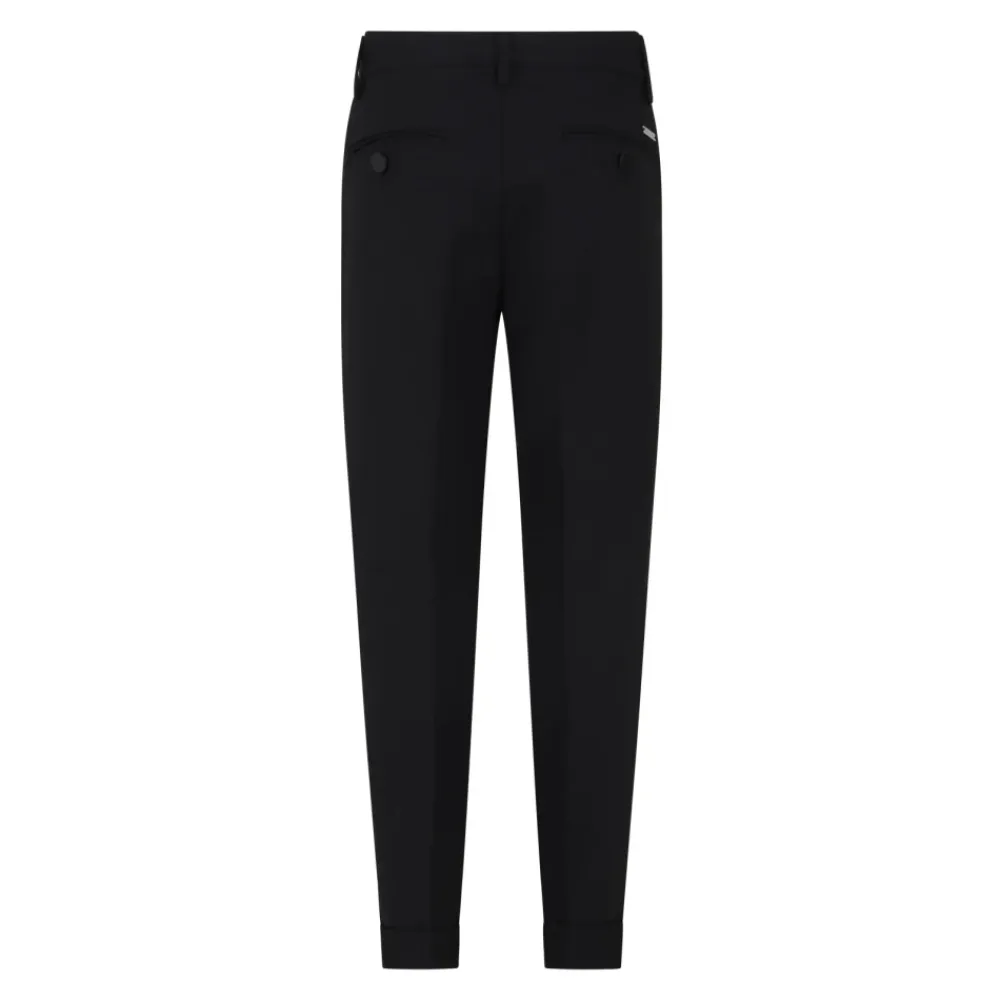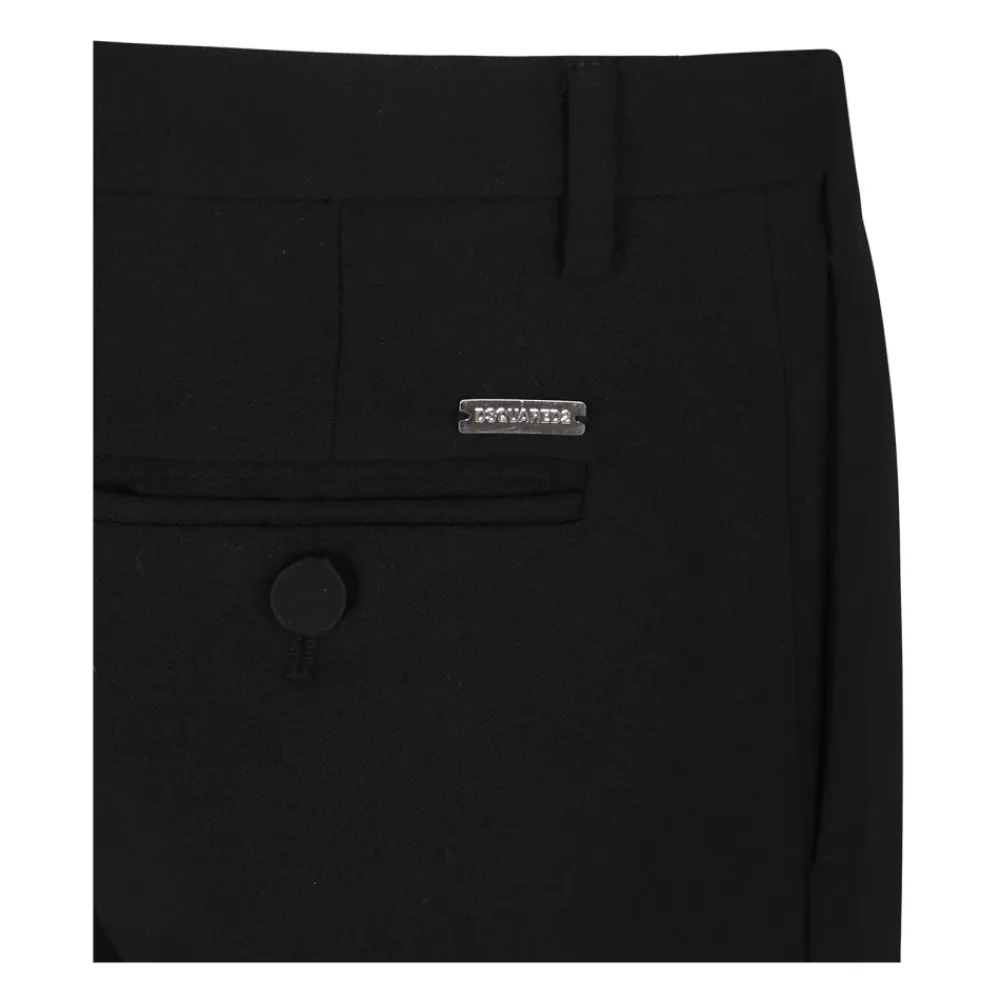 Heben Sie den Stil Ihres kleinen Mannes mit diesen schwarzen Dsquared2-Hosen hervor. Mit Gürtelschlaufen, Haken- und Reißverschluss vorne, verstellbarer Taille dank interner elastischer Bänder mit Knopf, seitlichen Leistentaschen und geknöpften Taschen hinten. Verziert mit einem Metalllogo auf der Rückseite. Details: 51% Polyester, 44% Wolle, 5% Elastan. Nur chemisch reinigen.