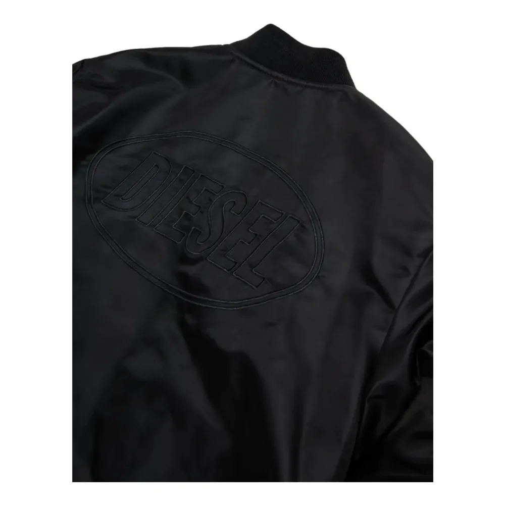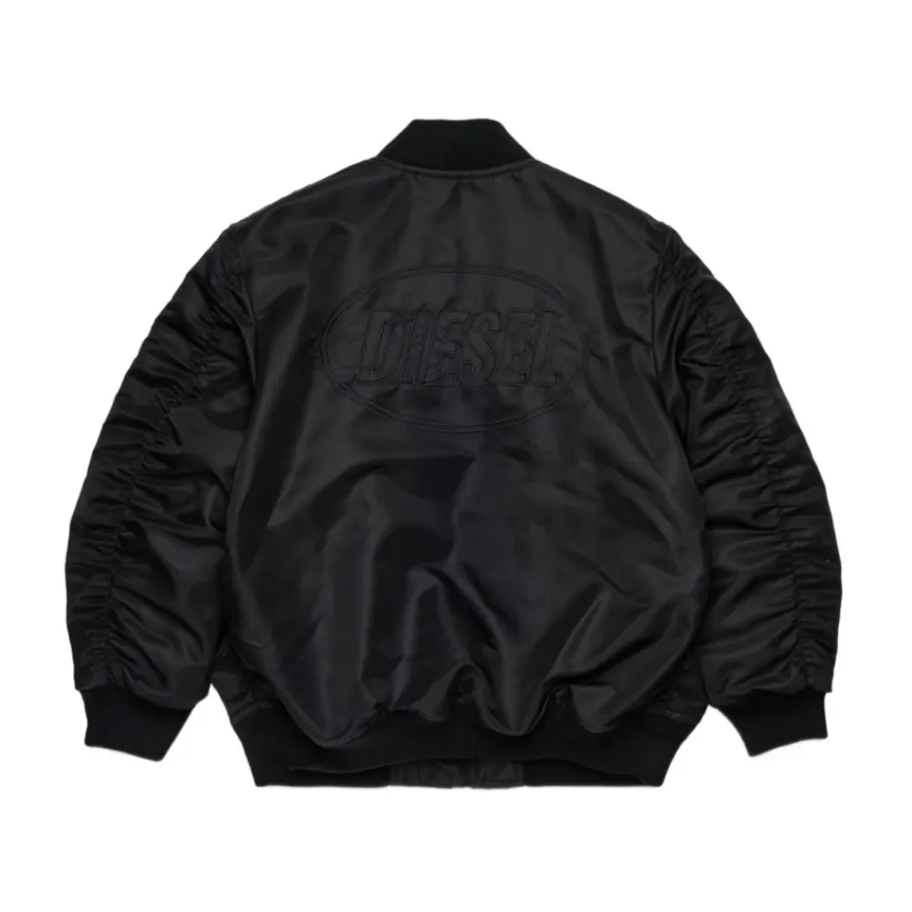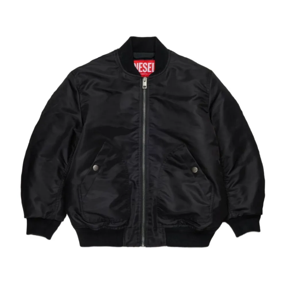 Diesel Kids schwarze leichte Jacke für Jungen mit Reißverschluss vorne, besticktem Logo auf der Rückseite und zwei seitlichen Leistentaschen.