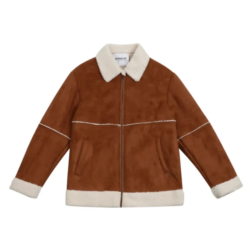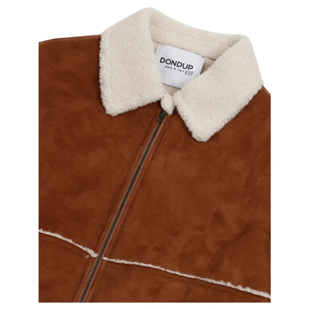 Dondup Kids braune Jacke aus weichem Kunstleder mit Schaffelleffekt, gefüttert mit Teddy-Fleece-Stoff, klassischer spitzer Teddykragen, lange Ärmel mit Teddy-Stoffbündchen, Frontreißverschluss, Teddy-Nähte, vertikale Schlitztaschen, gerader Saum mit Teddy-Stoffbesatz, reguläre Passform. Zusammensetzung: 100% Polyester. Taschenfutter: 100% Baumwolle. Hergestellt in Italien.