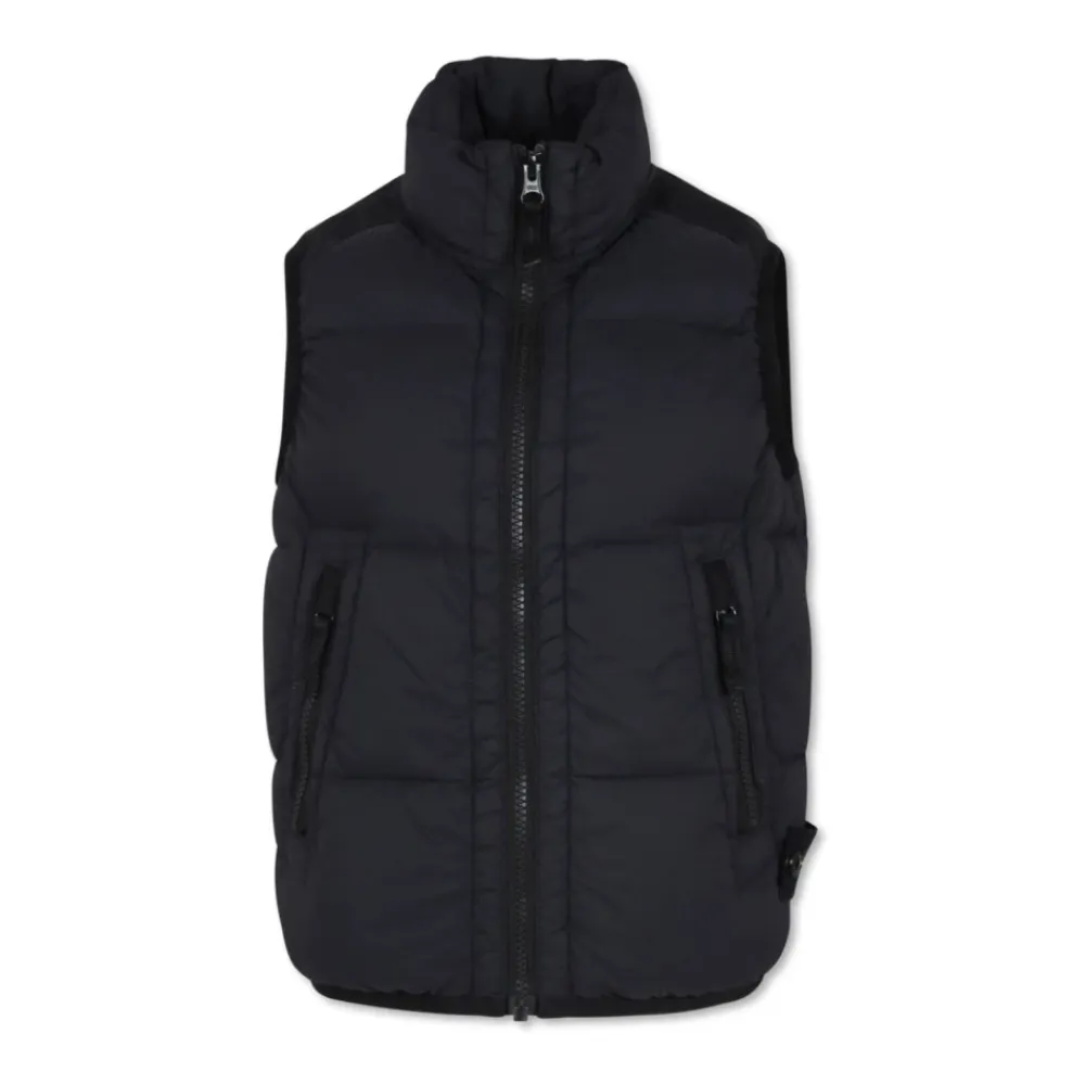 Verbessern Sie den Stil Ihres kleinen Mannes mit dieser schicken schwarzen Stone Island Kids Jacke. Hergestellt aus einer Mischung hochwertiger Stoffe, ist diese Weste perfekt für jeden jungen Trendsetter.