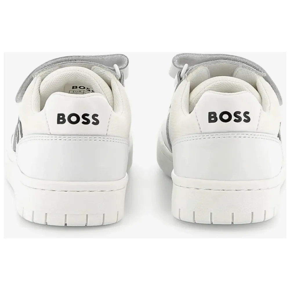 Diese weißen Sneaker für Jungen von Hugo werden mit Leidenschaft und hoher Qualität in Deutschland hergestellt. Hergestellt aus schwarzem Leder und Textil, zeigen sie Logo-Druck und einen braunen Absatz. Die klassische weiße Zwischensohle und die Gummilaufsohle mit Profil vervollständigen den Look. Elastisches Band über dem Spann mit Klettverschluss, schnelle Ferse und Zehenkappe innen, und herausnehmbare weiße Textilinnensohlen. Außen: Leder + Textil, Innen: Textil + Anderes Material, Laufsohle: Anderes Material.