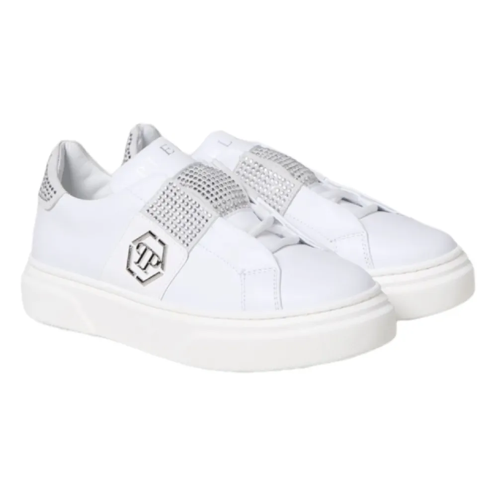 Steigern Sie den Stil Ihres kleinen Mädchens mit diesen Low-Top-Sneakers in Weiß von Philipp Plein. Perfekt für modebewusste junge Damen.