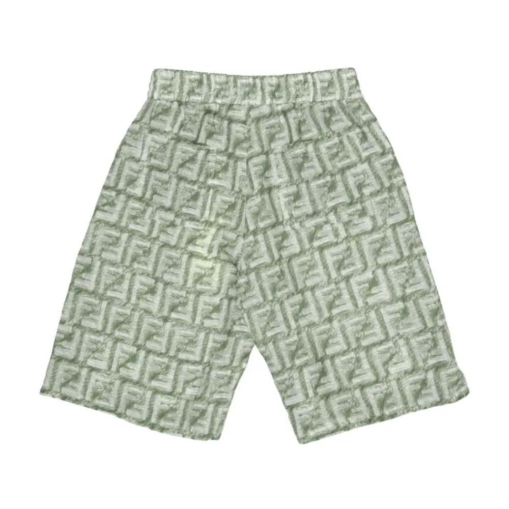 Fendi präsentiert die grüne Monogramm Leinen Shorts mit einem stilvollen Allover-FF-Motiv und einem bequemen elastischen Bund. Perfekt, um jeder Garderobe einen Hauch von Luxus zu verleihen. Wichtige Merkmale: Grün | Leinen | Elastischer Bund | Zwei Vordertaschen | Allover-FF-Motiv | Maße und Passform: Normale Passform |