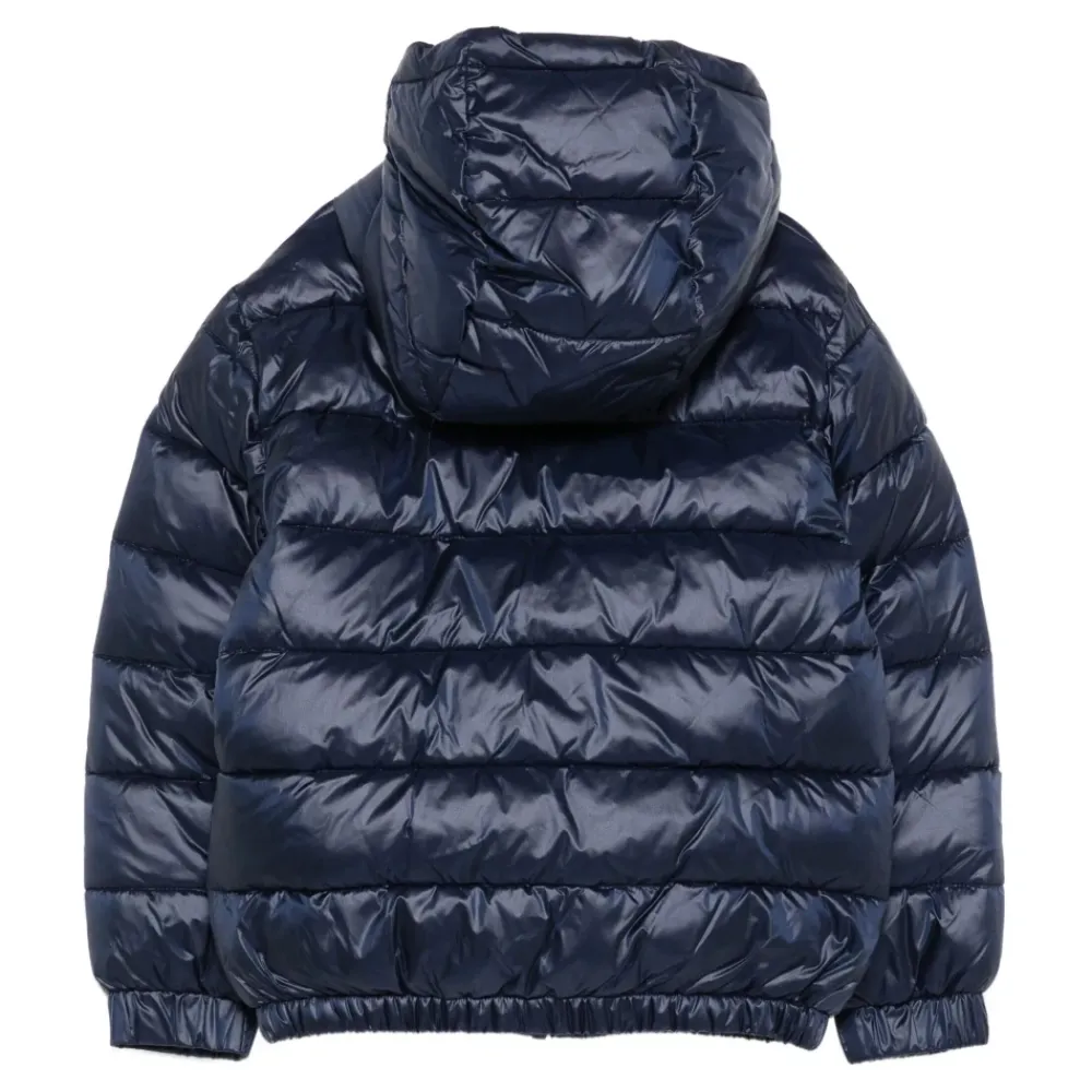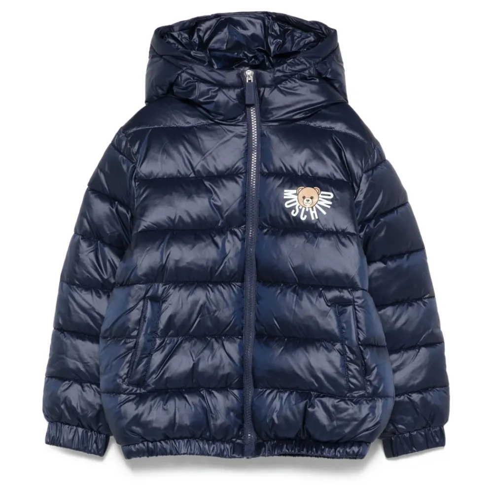 Bleiben Sie warm und stilvoll in diesem blauen Moschino Wintermantel für Kinder.