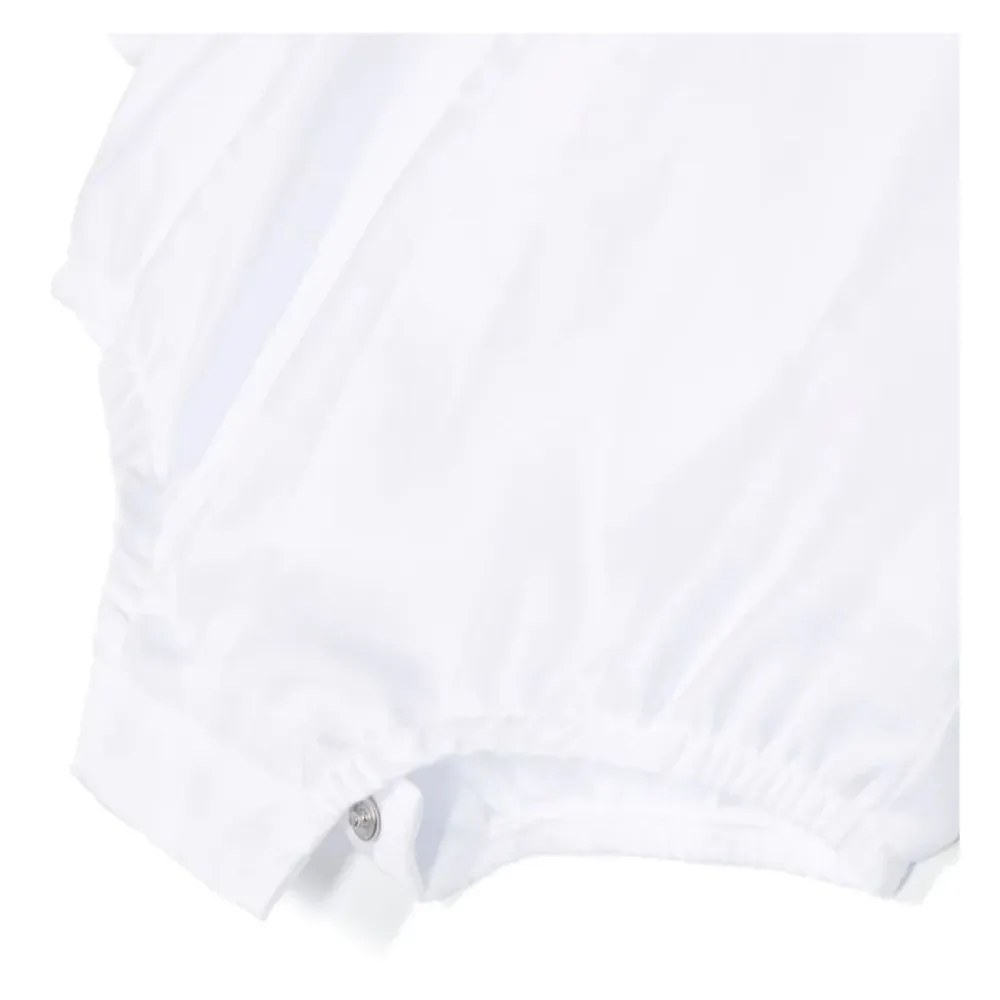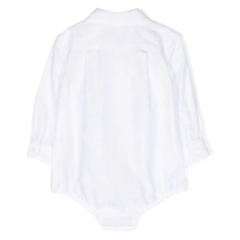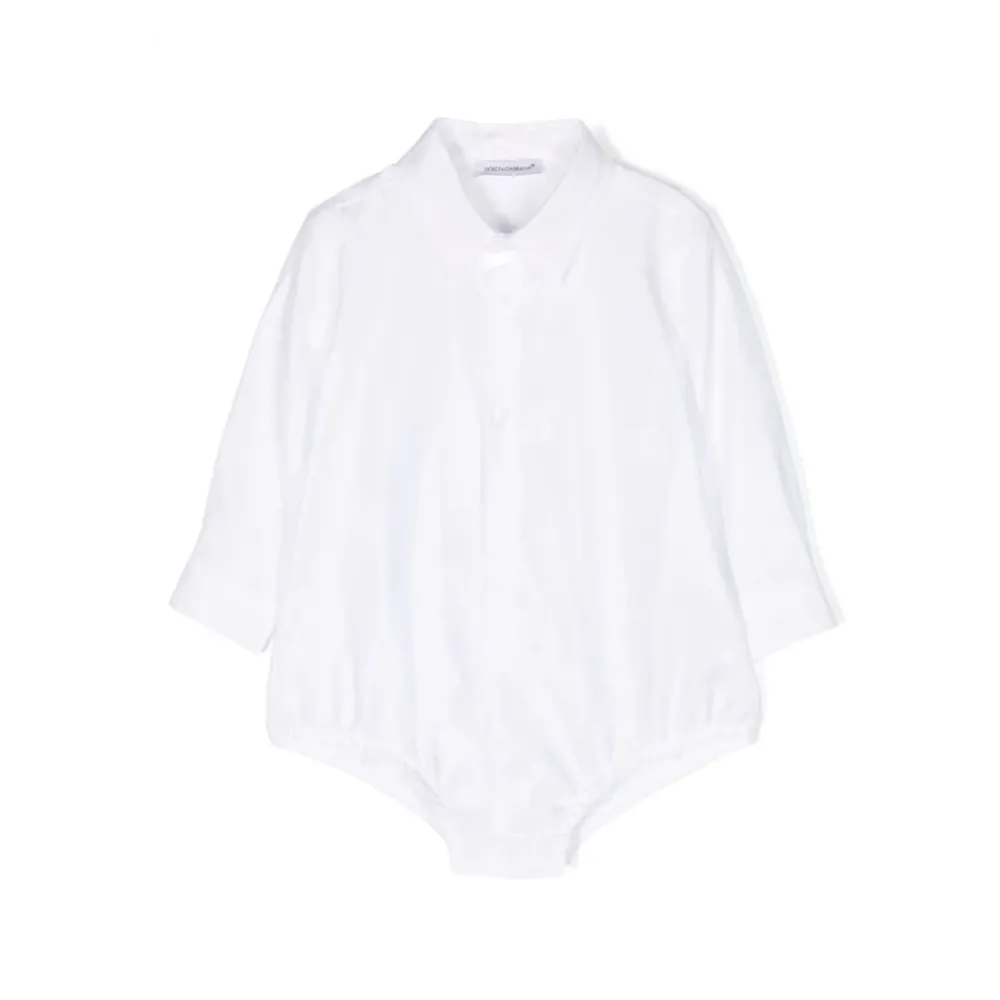 Vorstellung des Dolce Gabbana Weißen Baumwollbodys für Mädchen. Dieser klische Kragenbody verfügt über eine Knopfleiste vorne und Druckknöpfe für einfaches Anziehen. Mit langen Ärmeln und elastischem Saum bietet er sowohl Komfort als auch Stil.