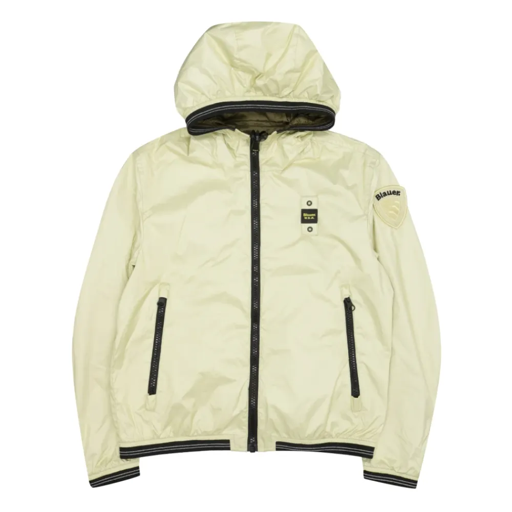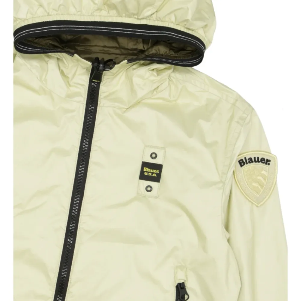 Blauer Kids Light Jacket für Jungen. Hergestellt aus technischem Stoff für Komfort. Wendbares Design mit fester Kapuze und Logo-Details. Verfügt über Reißverschluss, Reißverschlusstaschen und reguläre Passform.