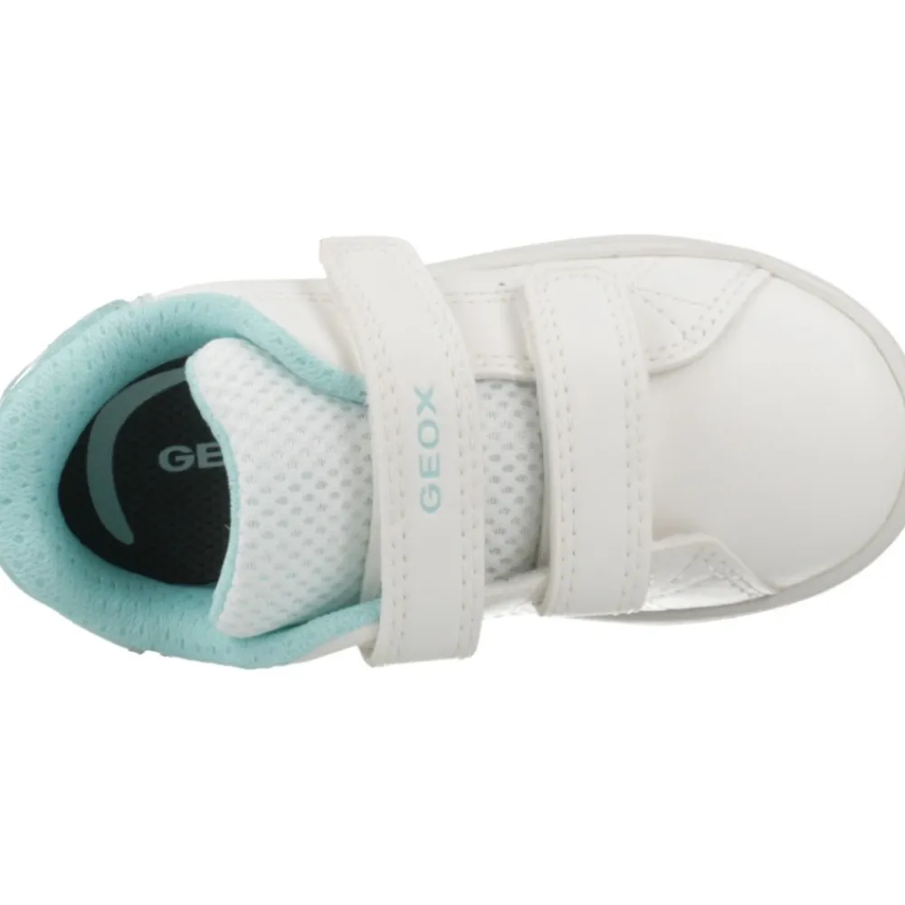 Der Geox Eclyper Sneaker präsentiert eine vom Tennis inspirierte, niedrig geschnittene Silhouette mit Geox Respira-Atmungsaktivität und schnellen Doppel-Klettverschlüssen für einfaches An- und Ausziehen. Hauptmerkmale: Weiß | Synthetikleder | Atmungsaktiv (Geox Respira belüftete Sohle) | Flexible Gummi-Außensohle | Doppel-Klettverschluss (Velcro) | Herausnehmbare Innensohle | Verstärkte Zehen und gepolsterte Ferse für zusätzlichen Schutz | Niedrig geschnittene Tennisplatz-Silhouette | Saubere Linien mit dezenten dekorativen Details | Zusammensetzung und Pflege: Obermaterial: Synthetikleder | Futter: Textil | Außensohle: Gummi | Innensohle: Textil (herausnehmbar)