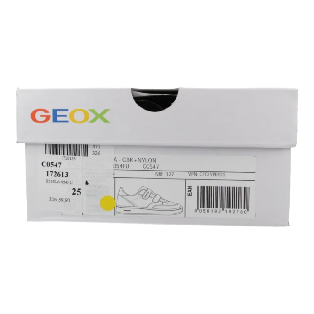 Die Geox Eclyper Sneakers kombinieren die atmungsaktive Respira-Sohlentechnologie der Marke mit einem schnellen Doppel-Klettverschluss für bequemen, einfachen Alltagskomfort. Hauptmerkmale: Weiß | Synthetisches Leder | Atmungsaktiv (Geox Respira) | Belüftete, perforierte Sohle | Doppel-Klettverschluss für einfaches An- und Ausziehen | Herausnehmbare Innensohle | Runde Spitze | Sportliche, vom Tennis inspirierte Silhouette | Dekorative Details | Abmessungen & Passform: Niedrig geschnittene Silhouette | Zusammensetzung & Pflege: Obermaterial: 87% Synthetik, 13% Textil | Futter: 92% Textil, 8% Synthetik | Laufsohle: 100% Gummi | Innensohle: 100% Textil