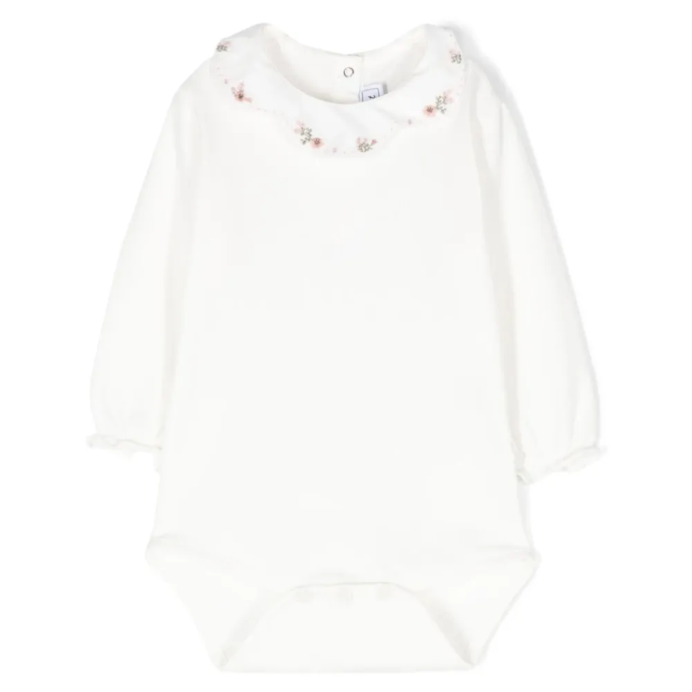 Der weiße Body mit langen Ärmeln von Tartine et Chocolat bietet eine Mischung aus Komfort und Stil, perfekt für den Alltag. Sein herausragendes Merkmal ist die zarte Blumenstickerei am Kragen, die einen Hauch von Eleganz verleiht. Wichtige Merkmale: Weiß | Baumwolle | Knöpfe am Steg | Abgerundeter Kragen mit Blumenstickerei | Lange Ärmel | Maße und Passform: Normale Passform | Zusammensetzung und Pflege: 95% Baumwolle | 5% Stretch | Maschinenwäsche kalt, Trocknergeeignet bei niedriger Temperatur