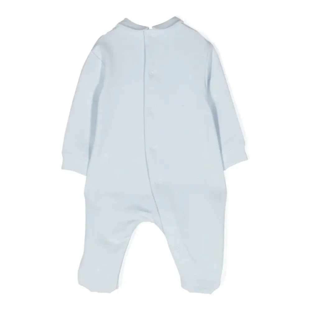 Kleiden Sie Ihr Kleines in diesen niedlichen Il Gufo Strampler mit Füßen. Hergestellt aus weichem, hellblauem Stretch-Fleece, verfügt er über einen runden Kragen und eine süße Teddybär-Applikation auf der Vorderseite, aus lockigem Haar in natürlichen Tönen. Das kontrastierende bestickte Eulenlogo verleiht einen stilvollen Touch. Mit praktischer Rückenöffnung und tonalen Druckknöpfen ist das Anziehen Ihres Babys noch nie so einfach gewesen. Erhältlich in verschiedenen Größen für Babys.