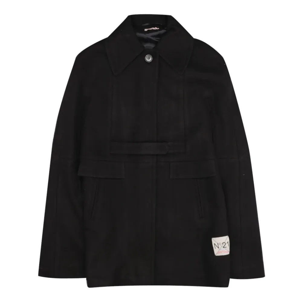 Verwöhnen Sie Ihre kleine Fashionista mit diesem stilvollen N21 Kids Cape in Schwarz. Hergestellt aus einer gemütlichen Wollmischung, verfügt diese leichte Jacke über einen vorderen Knopfverschluss, falsche Taschen, lange Ärmel und ein Logoschild. Perfekt, um jedem Outfit eine Hauch von Raffinesse zu verleihen.