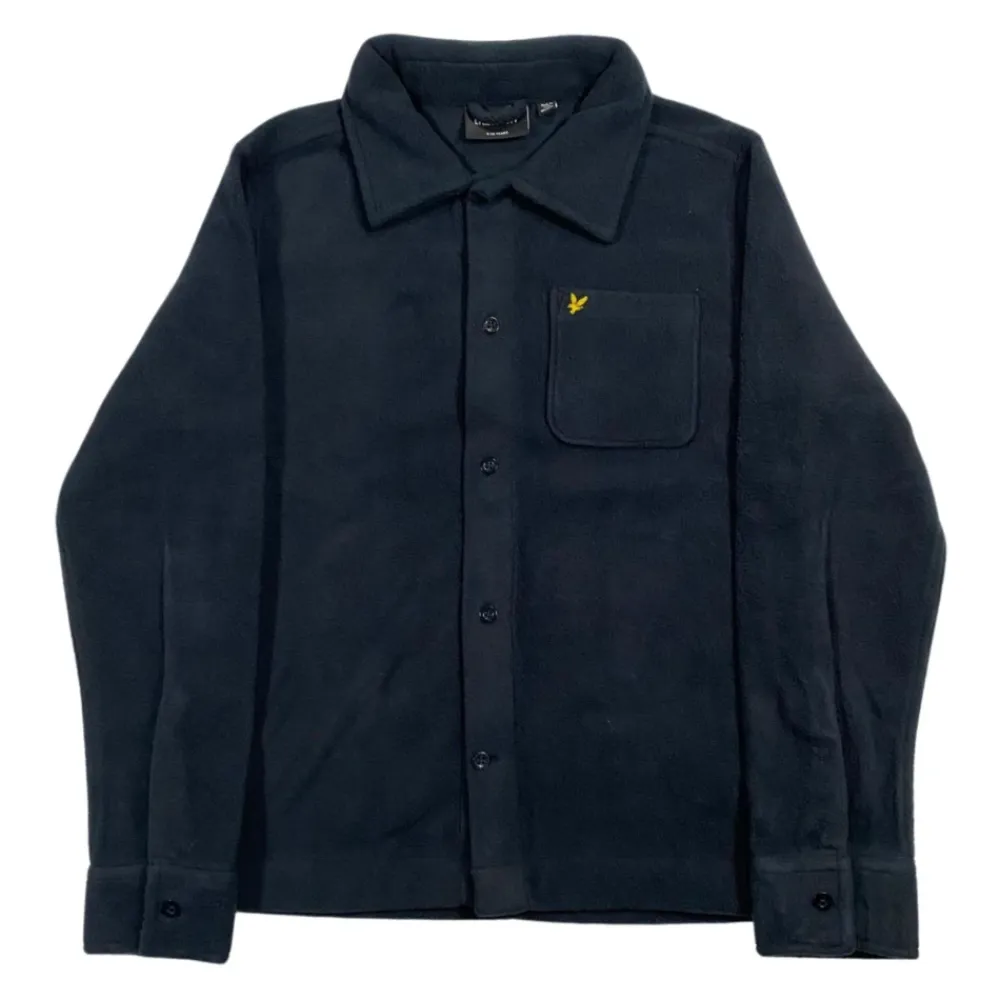 Kleide deinen kleinen Mann stilvoll mit dieser Lyle & Scott Kids blauen Hemdjacke. Hergestellt aus weichem fleeceartigem Polyesterstoff, mit langen Ärmeln mit Bündchen, einer Brusttasche, gesticktem kontrastierendem Logosymbol und einer regulären Passform. Zusammensetzung: 100% Polyester.