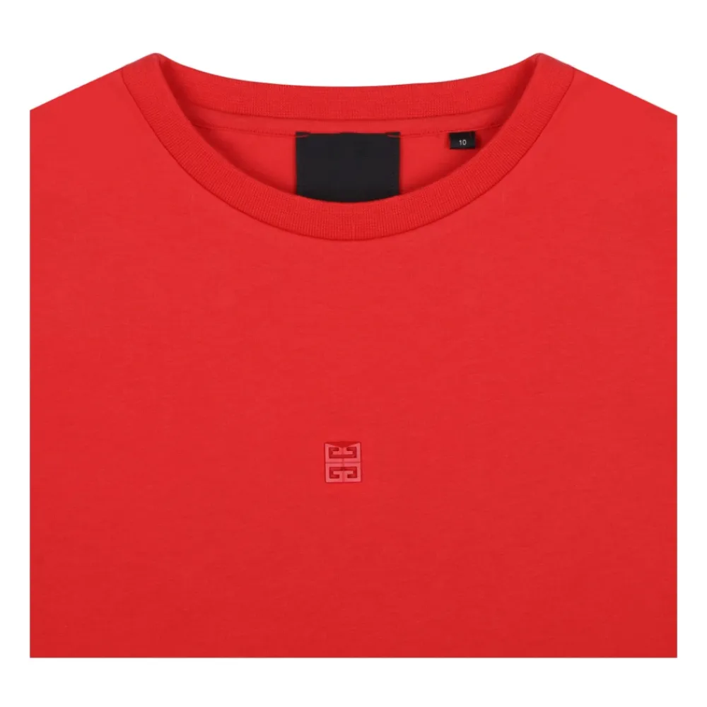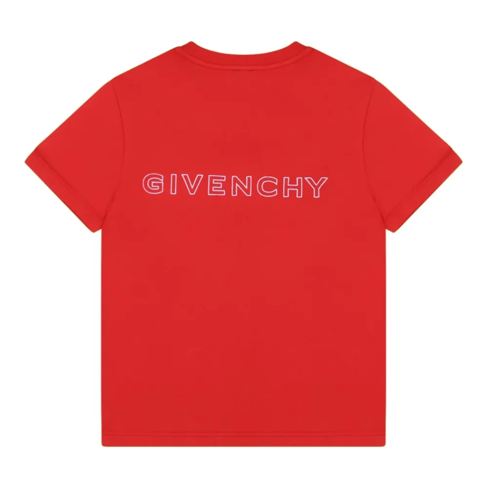 Kleide deinen kleinen Mann stilvoll mit diesem Givenchy Kids Red Monogram Print T-Shirt. Aus roter Baumwolle gefertigt, verfügt dieses T-Shirt über einen Monogramm-Druck auf der Vorderseite, Rundhalsausschnitt und kurze Ärmel.