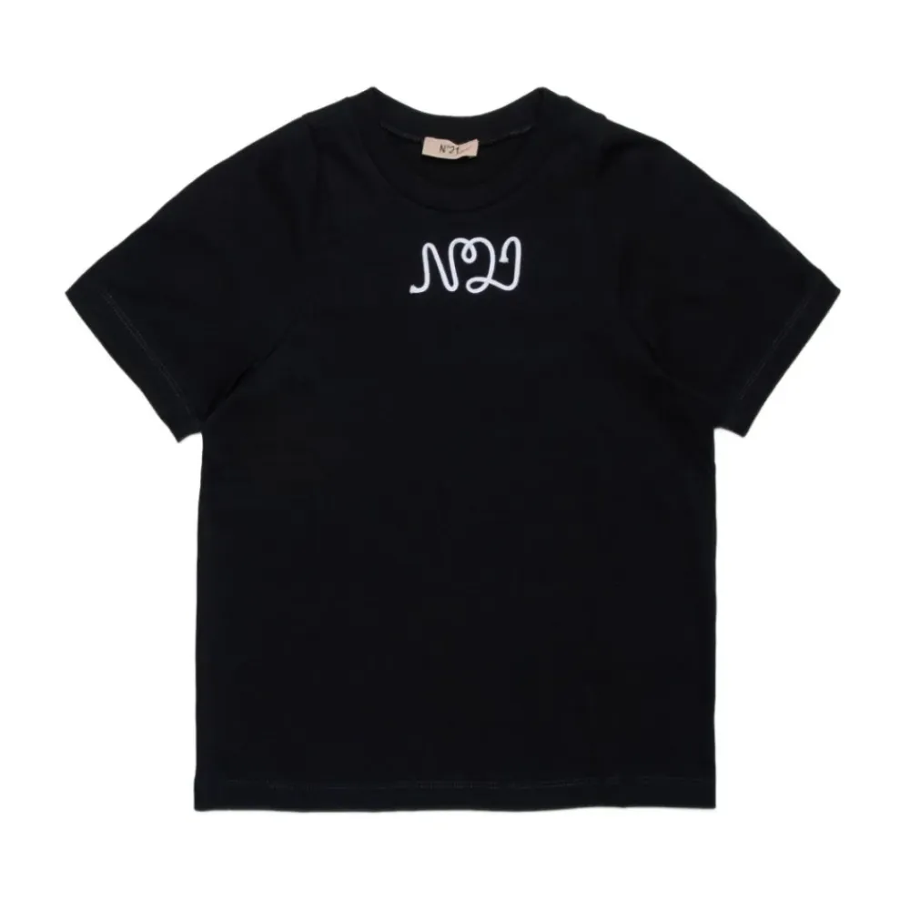 Werten Sie die Garderobe Ihres kleinen Mädchens mit diesem Nº21 Kids schwarzen T-Shirt mit Rundhalsausschnitt und kurzen Ärmeln auf.