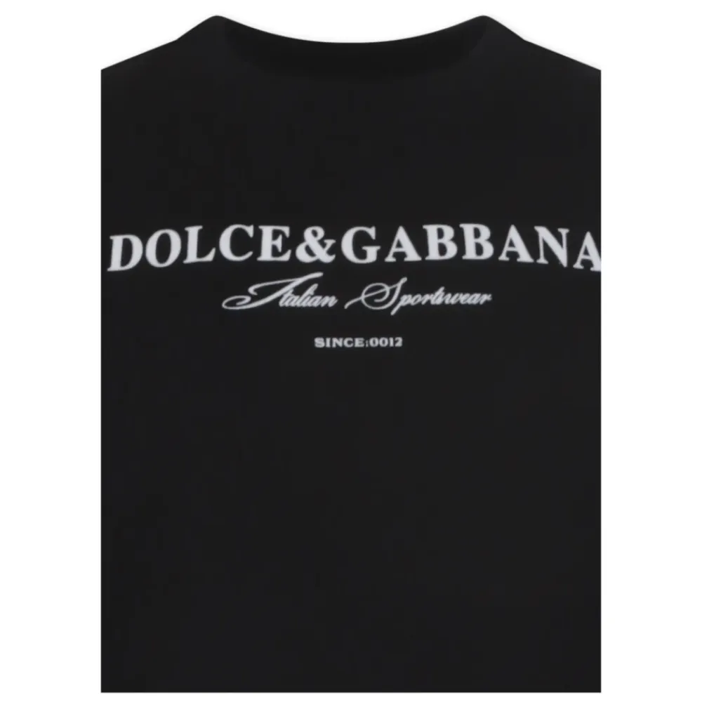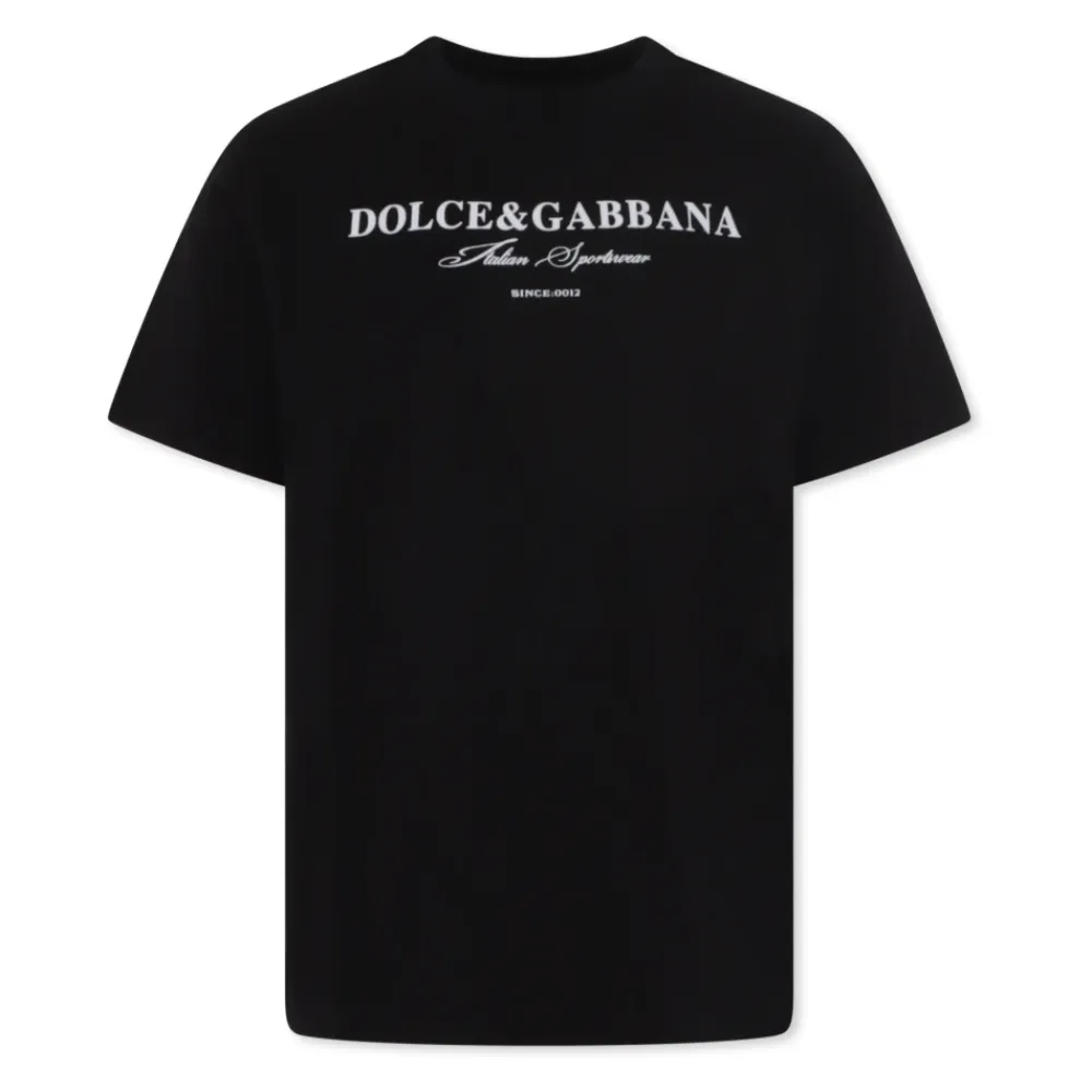 Werten Sie die Garderobe Ihres Kindes mit diesem schwarzen T-Shirt der Luxusmarke Dolce Gabbana Kids auf. Hergestellt aus weicher Baumwolle, mit kurzen Ärmeln, einem gerippten Rundhalsausschnitt und dem ikonischen Dolce Gabbana-Logo auf der Vorderseite. Hergestellt in Italien. Zusammensetzung: 100% Baumwolle. Pflege: Maschinenwäsche bei 30°C.
