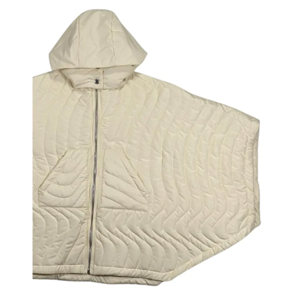 Khrisjoy Fipanna Cape ist eine cremefarbene, gesteppte Cape-Jacke mit abnehmbarer Kapuze und einem mittigen Reißverschluss für einfaches Anziehen. Ihre lockere, gepolsterte Silhouette ist für Layering und alltägliche Wärme konzipiert. Hauptmerkmale: Beige | Creme | Polyester | Abnehmbare Kapuze | Reißverschluss vorne mittig | Zwei Seitentaschen | Gestepptes Design | Cape-Silhouette | Gepolsterte Konstruktion | Abmessungen und Passform: Lockere Passform | Materialzusammensetzung und Pflege: Außenseite: 100 % Polyester | Füllung: 55 % Polyethylen, 45 % Polyester | Maschinenwäsche kalt, Schonwaschgang. Trocknergeeignet bei niedriger Temperatur. Nicht bleichen. Nicht bügeln.