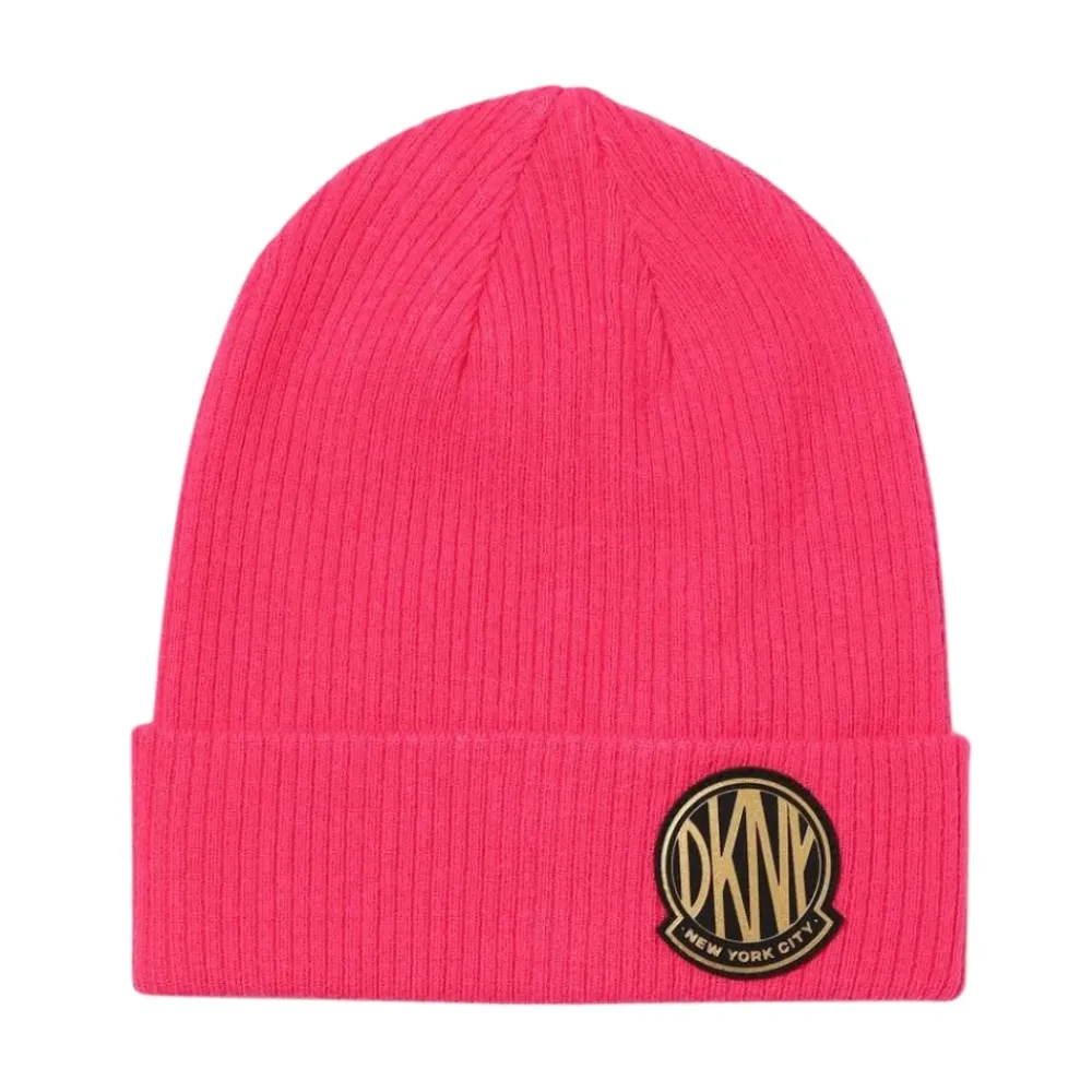 Fügen Sie mit diesem stilvollen DKNY-Hut in lebendigem Pink einen Farbtupfer zum Outfit Ihres kleinen Mädchens hinzu. Hergestellt aus 100% Merinowolle, ist dieser Hut sowohl modisch als auch funktional und hält Kinder geschützt und schick.