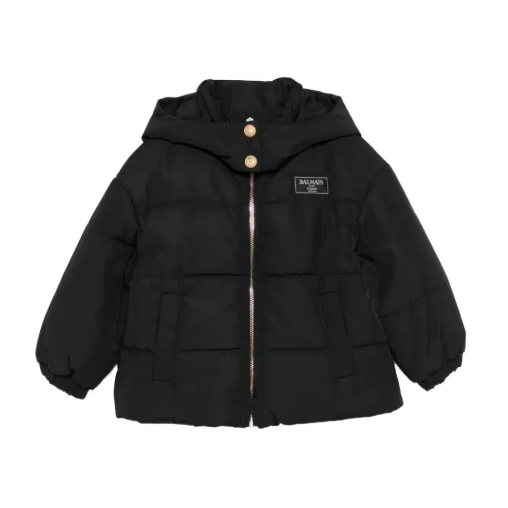 Die gesteppte Logo-Jacke von Balmain ist eine schwarze, gesteppte äußere Schicht mit goldfarbener Logoverzierung und einem Kapuzenkragen. Ihr Reißverschluss und die Balmain-Logo-Applikation machen sie zu einem herausragenden Kleidungsstück für kaltes Wetter. Hauptmerkmale: Schwarz | Polyester | Reißverschluss | Seitentaschen | Gestepptes Design | Goldfarbene Logoverzierung | Balmain-Logo-Applikation | Kapuzenkragen | Zusammensetzung & Pflege: 100 % Polyester (außen) | 100 % Polyamid (Futter)
