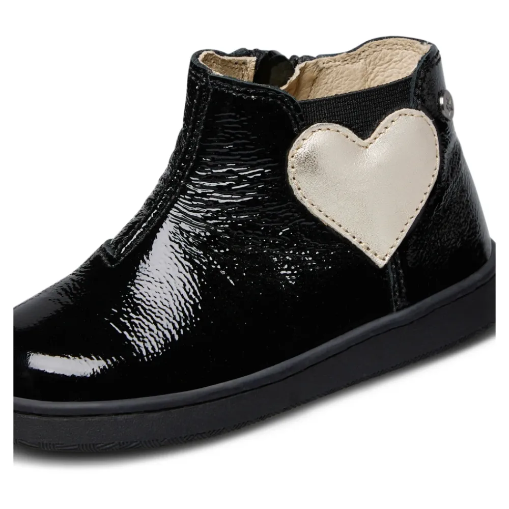Der Naturino GLARNY HIGH 2 Ankle Boot kombiniert glänzendes Lackleder mit einem glitzernden Herzdetail für einen auffälligen Alltagslook. Der Innenreißverschluss und der elastische Einsatz sorgen für einen schnellen, bequemen An- und Ausziehkomfort. Hauptmerkmale: Schwarz | Schwarz Gold | Lackleder | Innenliegender Reißverschluss | Elastischer Seiteneinsatz | Innensohle aus Leder | Abgerundete Spitze | Glitzerndes Herzdetail an der Seite | Knöchelhohe Silhouette | Zusammensetzung & Pflege: Lackleder (Obermaterial) | Leder (Futter) | Leder (Innensohle) | Gummi (Laufsohle)