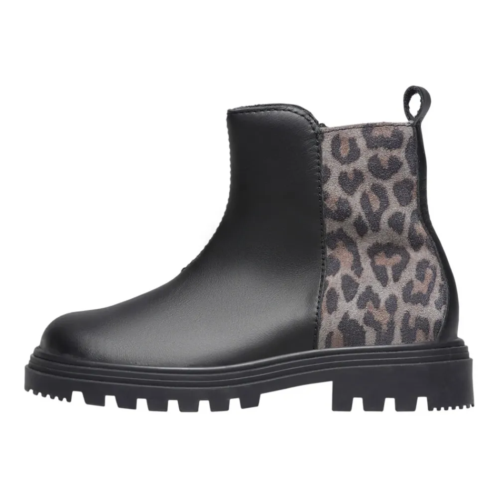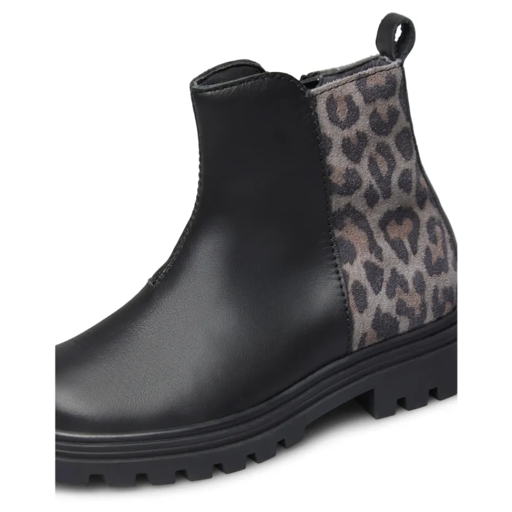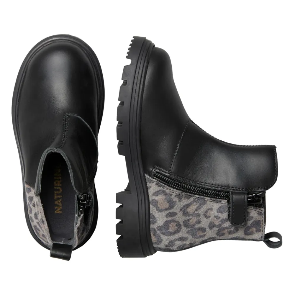 Naturino Grify Zip Stiefeletten kombinieren ein Obermaterial aus Leder mit einer Rückseite aus Wildleder im Animal-Print-Design für einen stylischen Alltagsstiefel. Ein Innenreißverschluss und eine Gummiprofilsohle erleichtern das Anziehen und bieten zuverlässigen Halt. Hauptmerkmale: Schwarz | Grau schwarz | Leder und Wildleder | Gummiprofilsohle für Traktion | Innenreißverschluss | Lederfutter | Lederinnensohle | Runde Zehenpartie | Wildlederrückseite mit Animal-Print-Dekor | Kontrastierendes Leder-Obermaterial | Zusammensetzung & Pflege: Obermaterial aus Leder | Wildlederrückseite | Lederfutter | Lederinnensohle | Gummiprofilsohle