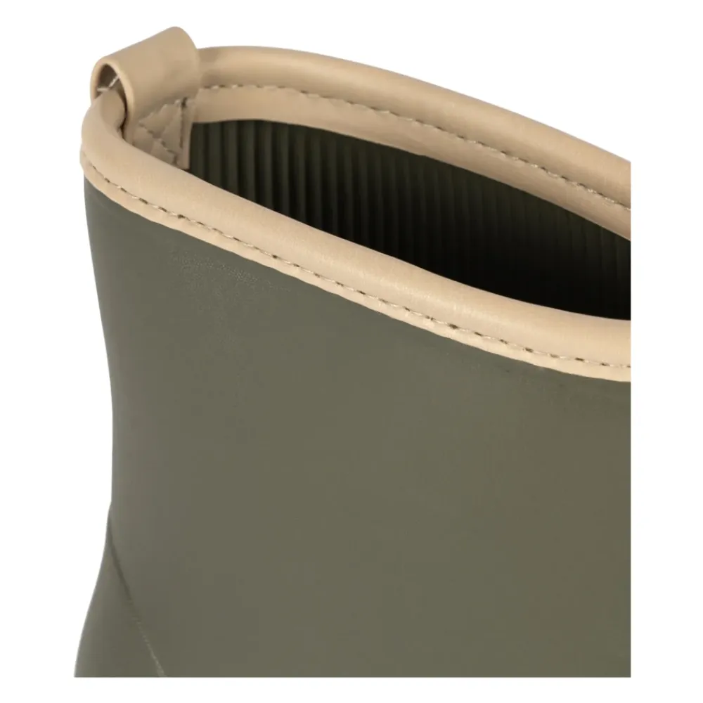 GUMMISTIEFEL MIT DEKORATIVER KANTE der angesehenen dänischen Marke Konges Sløjd verkörpern sowohl Eleganz als auch Praktikabilität. Dieses Paar sticht mit seinem tiefgrünen Farbton und dem exquisit verfeinerten Detail einer hellbeigen Paspelierung entlang des Stiefelsaumrandes hervor, was den einzigartigen Charakter des Schuhwerks betont. Die klassische, abgerundete Silhouette und der weite Stiefelschaft machen das Anziehen außergewöhnlich bequem, während die verdickte Sohle Stabilität beim Spielen im Freien garantiert. Sorgfältig aus einem einheitlichen, matten synthetischen Material gefertigt, begeistern die Gummistiefel mit ihrer minimalistischen Textur, frei von Mustern oder Inschriften. Das Produkt zeichnet sich durch ausgewogene Eleganz und Langlebigkeit aus und passt perfekt zur Philosophie des bewussten Designs. WARUM DIESES PRODUKT WÄHLEN? * Klassisches, zeitloses Design mit einem eleganten Detail * Bequeme Passform für müheloses Anziehen, auch für die jüngsten Benutzer * Außergewöhnliche Aufmerksamkeit für Details und Verarbeitung * Produkt, das mit Komfort und Langlebigkeit im Sinn geschaffen wurde * Eine Marke, die für ihre Designphilosophie bekannt ist Maße in mm: 20/21 = 150mm 22/23 = 160mm 24/25 = 170mm 26/27 = 180mm 28/29 = 190mm 30/31 = 200mm 32/33 = 210mm 34/35 = 220mm