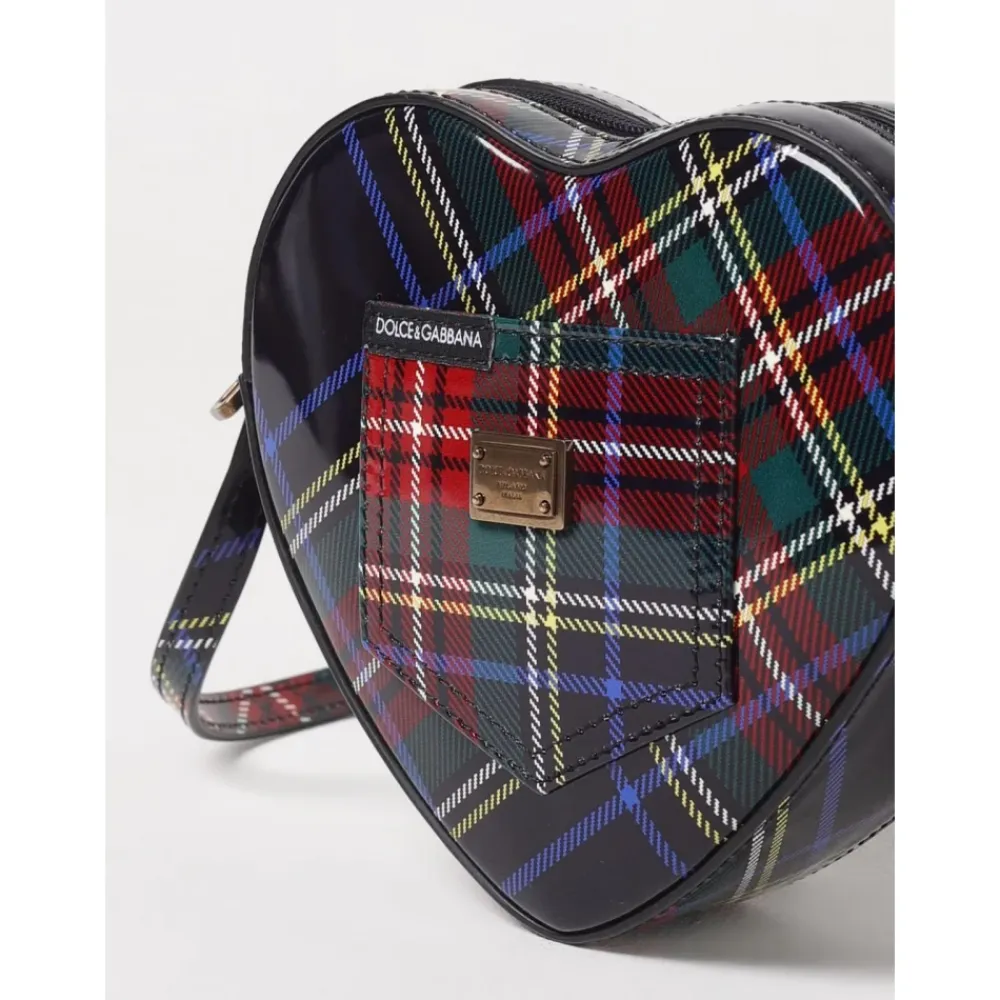 Heben Sie den Stil Ihres Kleinen mit dieser Dolce & Gabbana Kinderhandtasche hervor. Das herzförmige Design und das lebendige Tartanmuster machen sie zu einem herausragenden Stück. Hergestellt aus Lackleder, wird sie mit einem verstellbaren Riemen für vielseitiges Tragen geliefert.