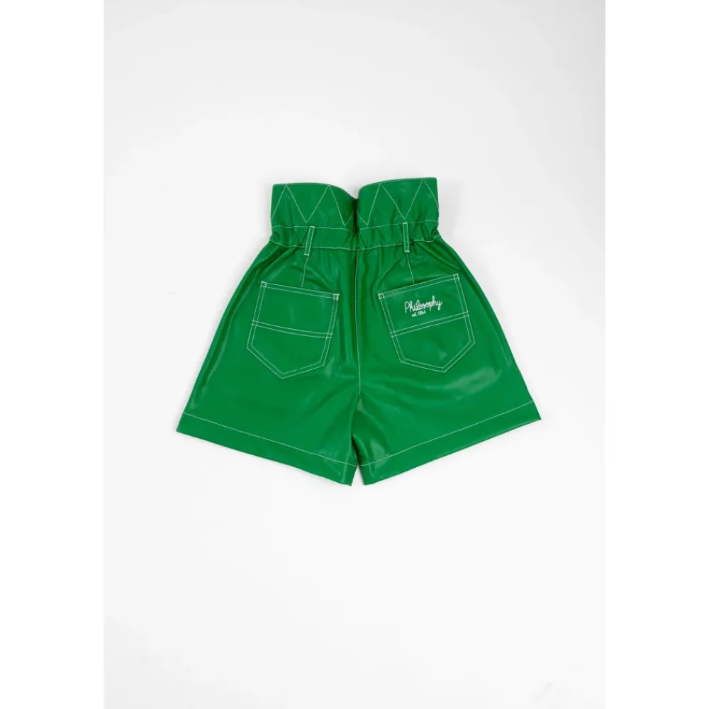 Verbessere deinen Style mit den High-Waist-Shorts von Philosophy di Lorenzo Serafini, die sich durch ein schickes, ausgestelltes Design und kontrastierende Nähte auszeichnen. Wichtige Merkmale: Grün | Polyester | Polyurethan | Knopf- und Reißverschluss | Zwei schräge Taschen | Ausgestelltes Design | Kontrastierende Nähte | Gesticktes Logo auf der Rückseite | Maße und Passform: Normale Passform | Zusammensetzung und Pflege: Polyester | Polyurethan | Maschinenwäsche kalt, Trocknergeeignet bei niedriger Temperatur