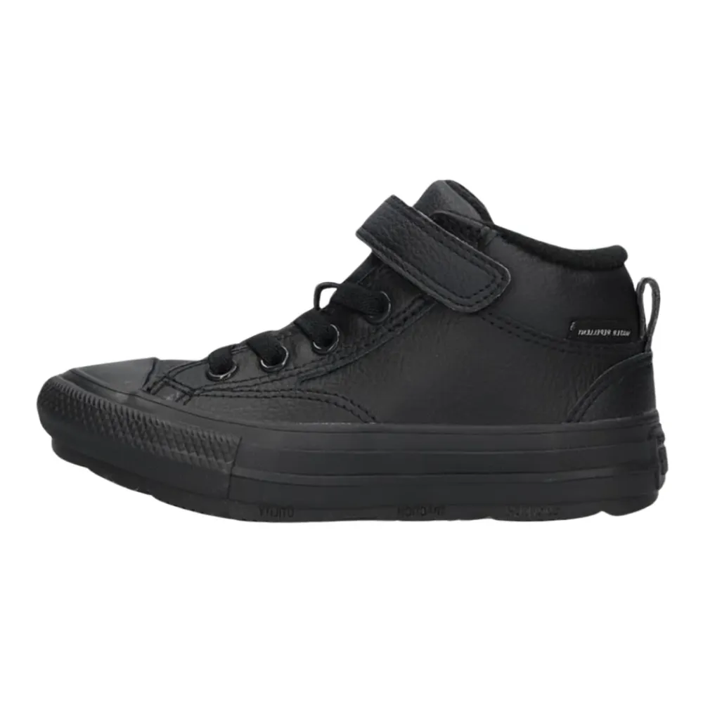 Stilvoll und bequem, die CHUCK TAYLOR ALL STAR BOY High-Top-Sneaker von CONVERSE sind perfekt für trendige Jungen. Hergestellt aus schwarzem Lederlook außen passen diese Sneaker zu jedem Outfit. Mit coolen Converse-Details wie der Gummikappe, dem Markenpatch an der Seite und dem Label an der Ferse. Das herausnehmbare Fußbett und das Fleece-Textil-Futter sorgen für eine bequeme Passform. Einfach an- und auszuziehen mit dem praktischen Klettverschluss und elastischen Schnürsenkeln. Die Gummisohle bietet guten Halt für Abenteuer. Kombinieren Sie diese Sneaker mit Jeans und einem lässigen Shirt für einen kompletten Look. Treten Sie selbstbewusst mit diesen Sneakern auf!