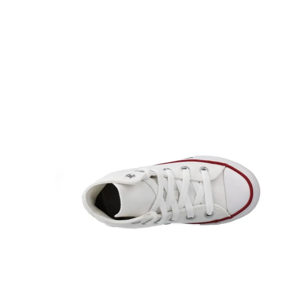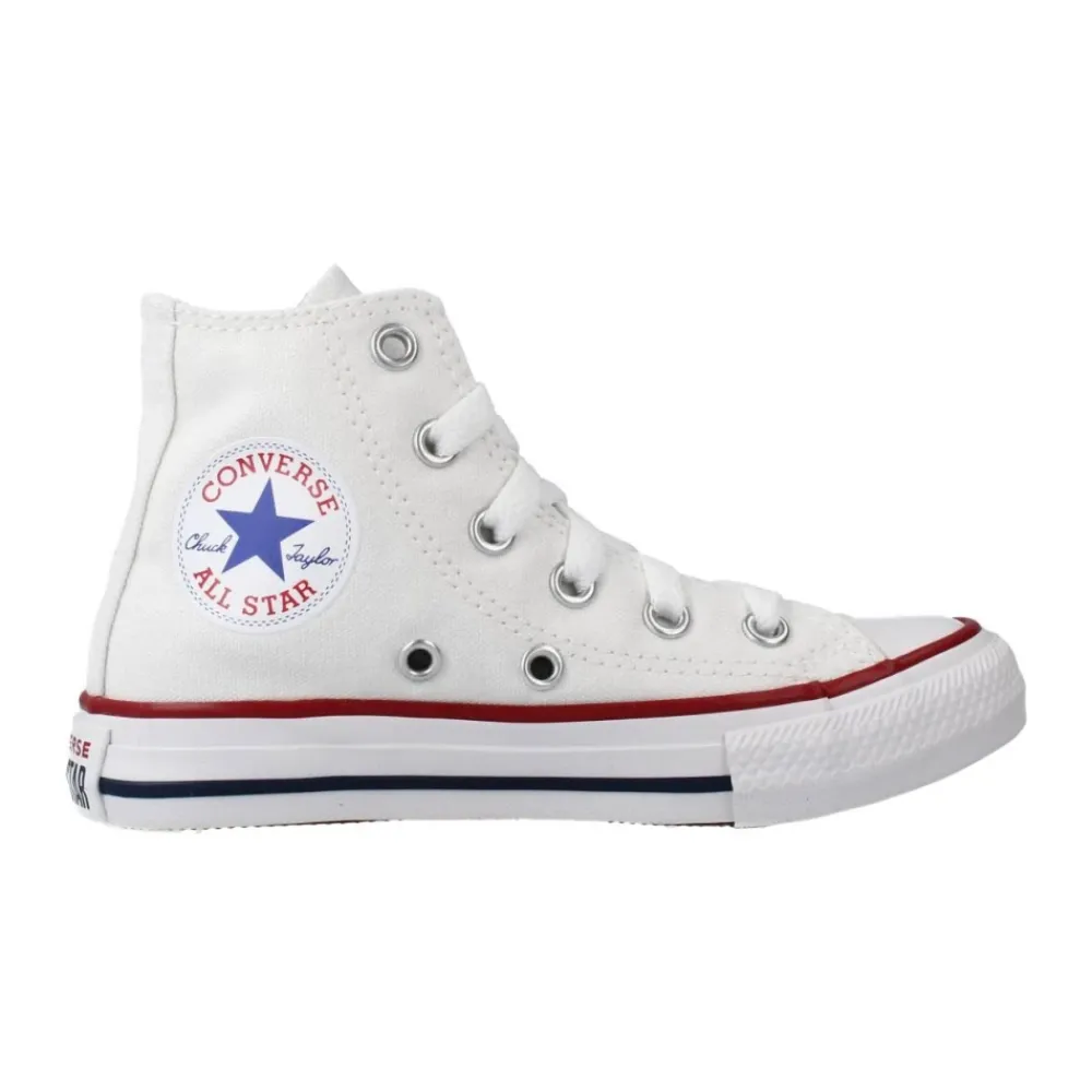 Verbessern Sie Ihr Sneaker-Spiel mit diesen High-Top-Sneakers der Marke CONVERSE, Modell 3J253C YTHS CT CORE HI. Mit einem textilen Außenmaterial in der Farbe OPATICWHITE, silbernen Ösen und Schnürung. Das Innenfutter ist aus Textil und die Gummisohle ist mit einem Logo an der Ferse versehen. Designed in den USA.