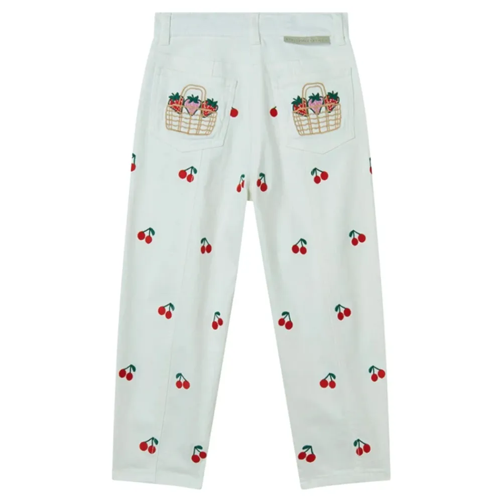 Die Stella McCartney Hose mit Kirschprint vereint klassische Denim-Schneiderei mit verspielten, aufgestickten Fruchtdetails für den Alltag. Das Five-Pocket-Design und der verstellbare Bund bieten Komfort und einen sicheren Sitz. Hauptmerkmale: Weiß | Baumwolle | Leichter Stretch | Fünf Taschen | Gürtelschlaufen | Reißverschluss und Knopf vorne | Verstellbarer Bund mit Innenknopf | Allover-Stickerei mit Kirschen | Erdbeerstickerei auf den Gesäßtaschen | Klassische Five-Pocket-Denim-Silhouette | Zusammensetzung & Pflege: 98% Baumwolle, 2% Elastan