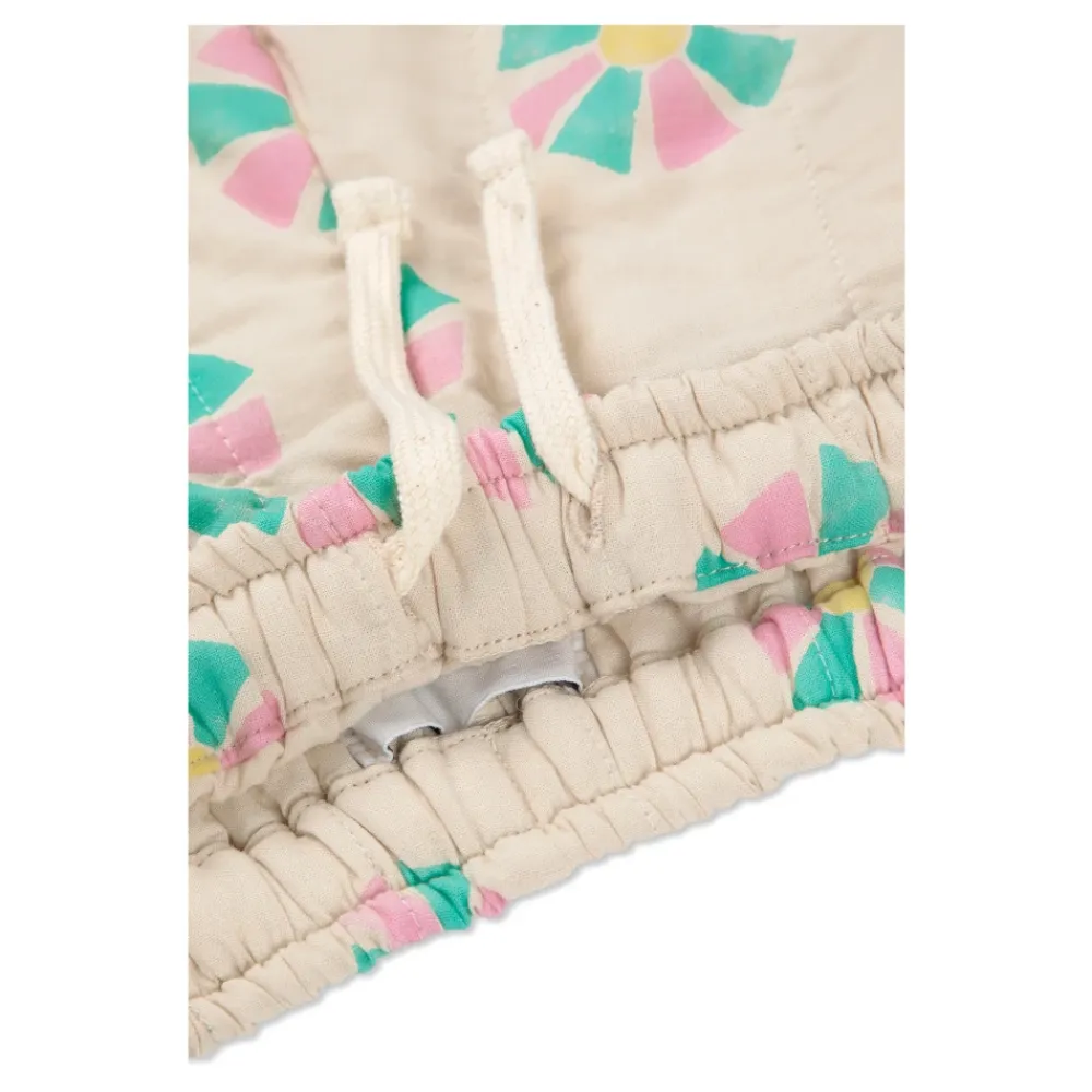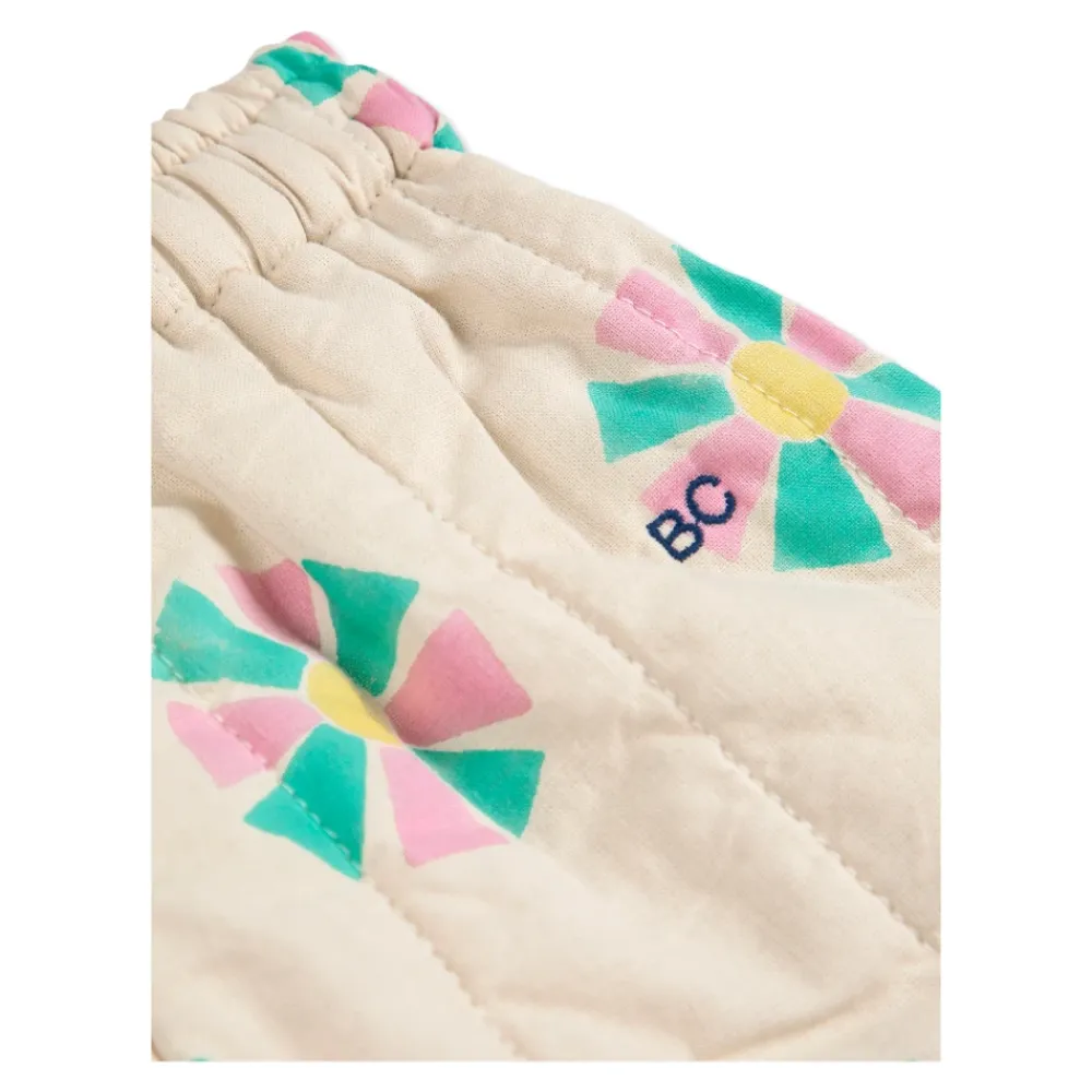 ISOLIERTE BEDRUCKTE HOSEN von Bobo Choses sind der Inbegriff von raffiniertem Komfort und sorgfältig durchdachter Ästhetik, die sich der Kinder widmet. Der klassische, gerade Schnitt mit leicht ausgestellten Beinen ergänzt perfekt den breiten, elastischen Bund mit einem zusätzlichen Tunnelzug und garantiert selbst für die aktivsten Kleinen einen kompromisslosen Komfort. Die Hosen bestehen aus einem außergewöhnlich weichen, isolierten Baumwollstoff mit einer dezenten Steppstruktur, die ein angenehmes Gefühl und Wärme gewährleistet. Das bedruckte, wiederkehrende Motiv stilisierter, geometrischer Blumen in Pastelltönen – Rosa, Grün und Gelb – auf einem cremefarbenen Hintergrund strahlt kindliche Freude und ein anspruchsvolles Stilgefühl aus. Ein kleines, besticktes „BC“-Logo in der Nähe der Vordertasche ist ein raffinierter Abschluss, der den exklusiven Charakter des Produkts betont, das eine Kreation der renommierten spanischen Marke ist, die für einzigartige Designs bekannt ist, die von der Vorstellungskraft der Kinder inspiriert sind. WARUM DIESES PRODUKT WÄHLEN? * Edler, isolierter Stoff für thermischen Komfort * Außergewöhnlich bequemer Schnitt mit elastischem Bund * Schönes, zeitloses geometrisches Blumenmuster * Dezentes Logo, das den Prestige der Marke unterstreicht * Einzigartiges Design, inspiriert von der Kreativität der Kinder