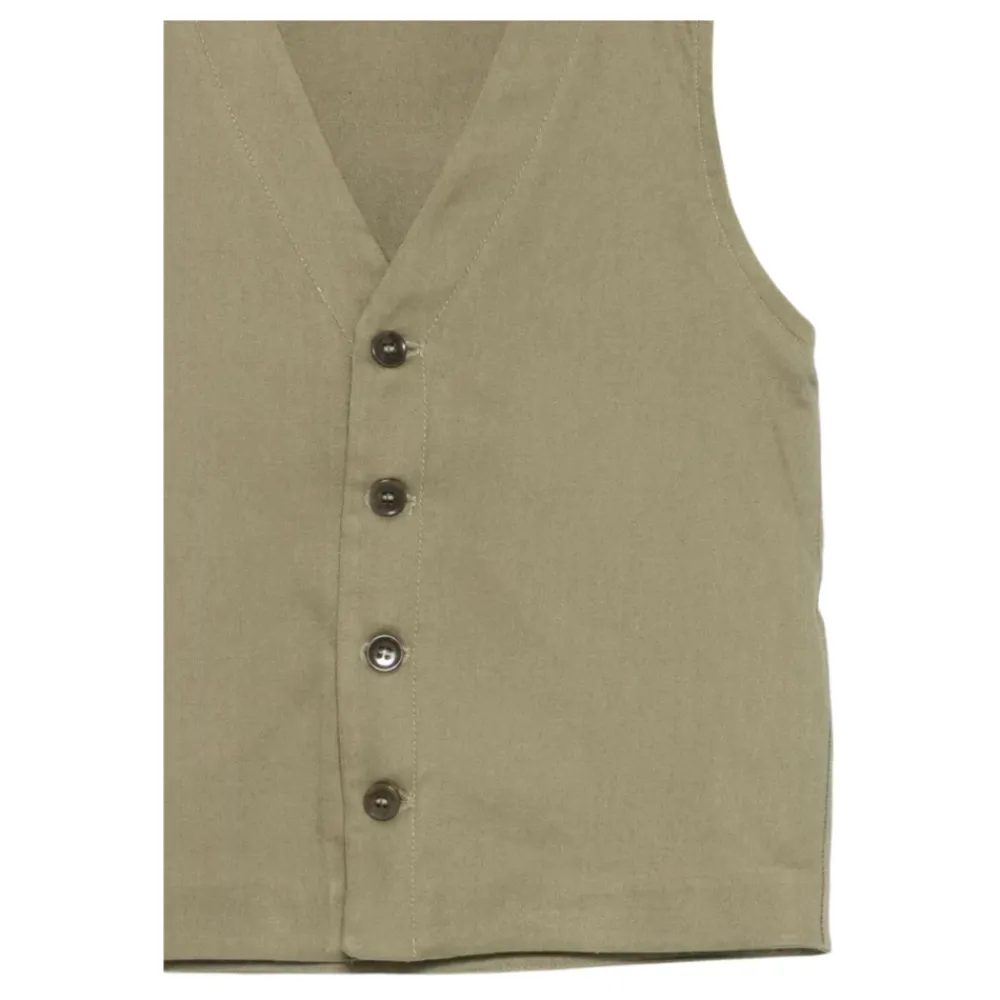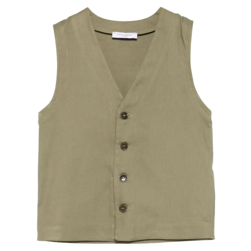 Paolo Pecora Weste mit Knopfverschluss und V-Ausschnitt, entworfen für vielseitige Schichtung und den täglichen Gebrauch. Hauptmerkmale: Grün | Viskose | Knopfverschluss | V-Ausschnitt | Ärmellos | Maße & Passform: Normale Passform | Materialzusammensetzung & Pflege: 40% Viskose | 33% Leinen | 26% Baumwolle | 1% Elasthan | Maschinenwäsche kalt, Schonwaschgang. Nicht bleichen. Flach zum Trocknen auslegen. Bei Bedarf kühl bügeln.