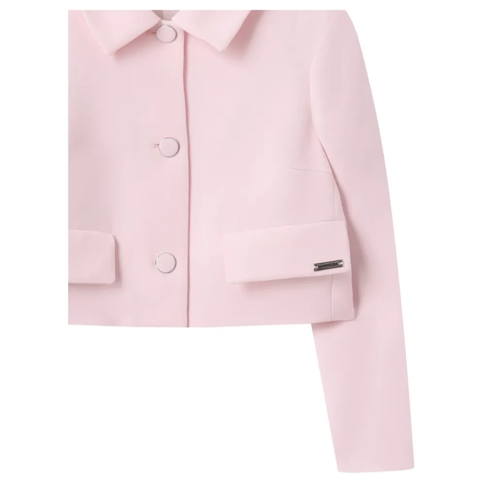 Monnalisa präsentiert eine hellrosa, cropped Jacke, die eine maßgeschneiderte Silhouette mit verspielten Details verbindet. Sie verfügt über einen klassischen Kragen, Pattentaschen und eine Metall-Logo-Applikation für ein edles Finish. Wichtige Merkmale: Hellrosa | Polyester | Pattentaschen | Cropped Design | Kragen | Metall-Logo-Applikation | Abmessungen & Passform: Normale Passform | Materialzusammensetzung & Pflege: Obermaterial: 100% Polyester | Futter: 100% Polyester