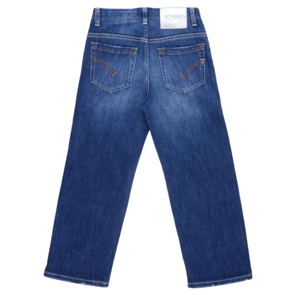 Dondup Jeans in einer mittel-dunkelblauen Waschung mit Aufhellungs- und Abriebdetails für einen entspannten Denim-Look für jeden Tag. Der Wide-Leg-Schnitt und das klassische Five-Pocket-Design verbinden modernen Stil mit Tragekomfort. Wichtige Merkmale: Blau | Denim | Baumwolle | Five-Pocket-Design | Logo auf der Rückseite | Mittel-dunkle Waschung | Aufhellungsdetails | Abschürfungen | Abmessungen und Passform: Weites Bein | Materialzusammensetzung und Pflege: 89% Baumwolle | 11% Elastan
