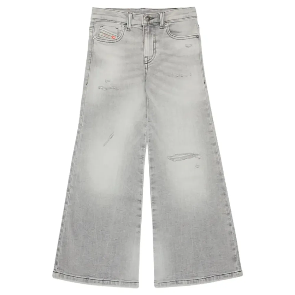 Diesel Jeans in einer grauen Waschung mit verblichenen Details und künstlich abgenutzten Rissen. Eine lässige, trendige Hose für den Alltag. Hauptmerkmale: Grau | Grey | Baumwolle | 5-Pocket-Styling | Gürtelschlaufen | Reißverschluss und Knopfverschluss vorne | Verstellbarer, innenliegender Gummibund mit Knöpfen | Verblichene Details | Künstlich abgenutzte Risse | Logo-Patch auf der Rückseite | Maße & Passform: Weites Bein | Materialzusammensetzung & Pflege: 77% Baumwolle | 14% Polyester | 8% Rayon | 1% Elastan