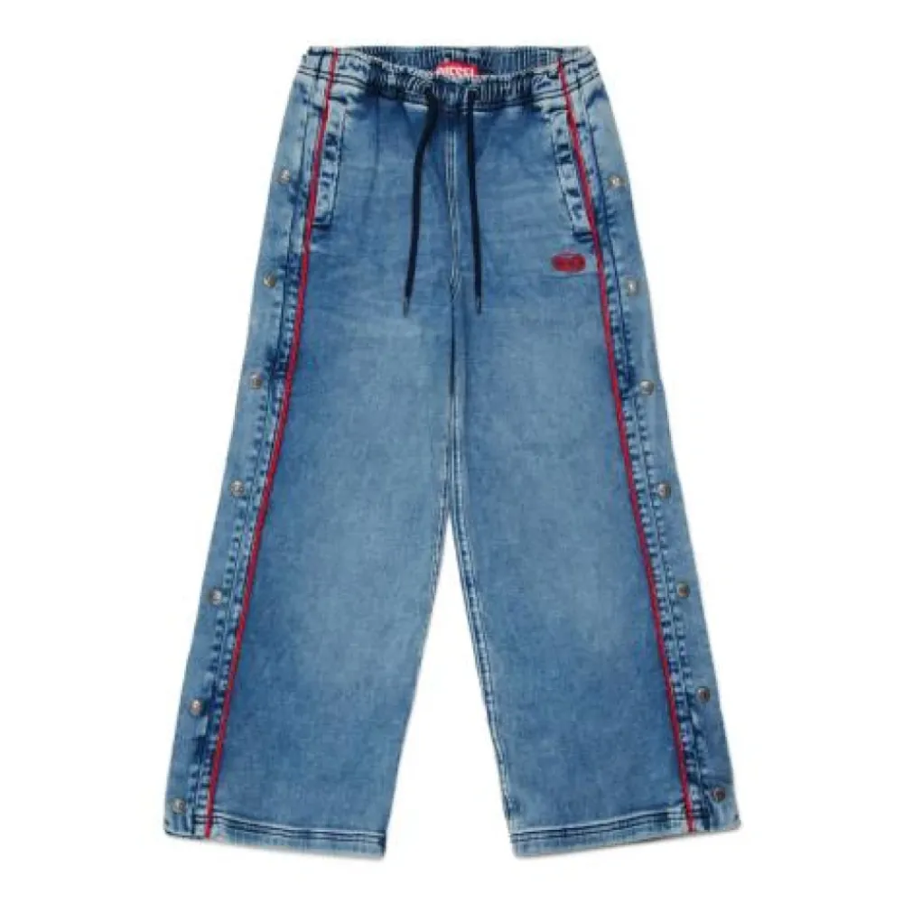 Die Diesel Jeans mit Knopfleiste kombinieren einen Knopfverschluss mit einem elastischen Bund und Kordelzug für eine verstellbare, bequeme Passform. Das Design verfügt über praktische Taschen und einen roten Besatz für ein unverwechselbares Finish. Hauptmerkmale: Blau | Baumwolle | Stretch | Elastischer Bund | Kordelzug | Seitentaschen | Aufgesetzte Gesäßtaschen | Knopfleiste | Roter Besatz | Seitliche Öffnungen | Aufgesetzte Gesäßtaschen | Materialzusammensetzung und Pflege: 98 % Baumwolle | 2 % Elastan | Maschinenwäsche kalt (30 °C). Nicht bleichen. Bügeln bei niedriger Temperatur (max. 110 °C). Nicht chemisch reinigen. Nicht im Trockner trocknen. Liegend im Schatten trocknen.