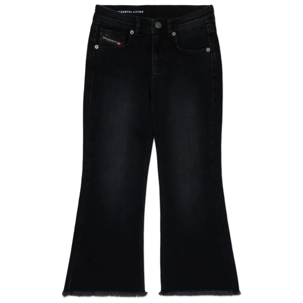 Diesel Jeans im Five-Pocket-Design mit Stretch-Denim für eine bequeme Passform. Ausgefranster Saum, eine hintere Passe und ein markanter Rückenaufnäher verleihen Charakter und Stil. Hauptmerkmale: Schwarz | Nero | Denim | Stretch-Denim | Five-Pocket-Design | Ausgefranster Saum | Hintere Passe | Rückenaufnäher | Abmessungen & Passform: Bequeme Passform